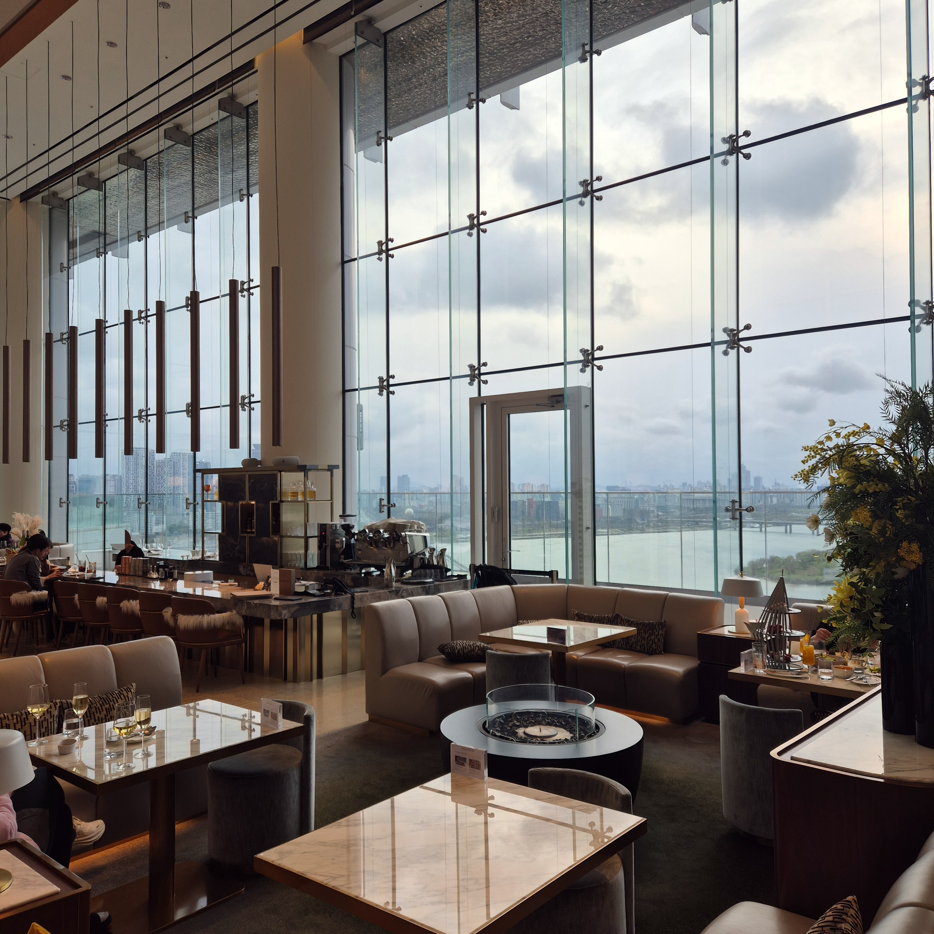 호텔 나루는 뷰가 좋기로 유명한 호텔 중 하나라고 하더라고요. 한강 뷰를 뻥 뚫린 시야로 볼 수 있고 통창 뷰라 더 좋고, 날씨가 좋고 석양이 질 때면, 그 값만으로도 뽕을 뽑는다는 리뷰를 많이 봤어요!