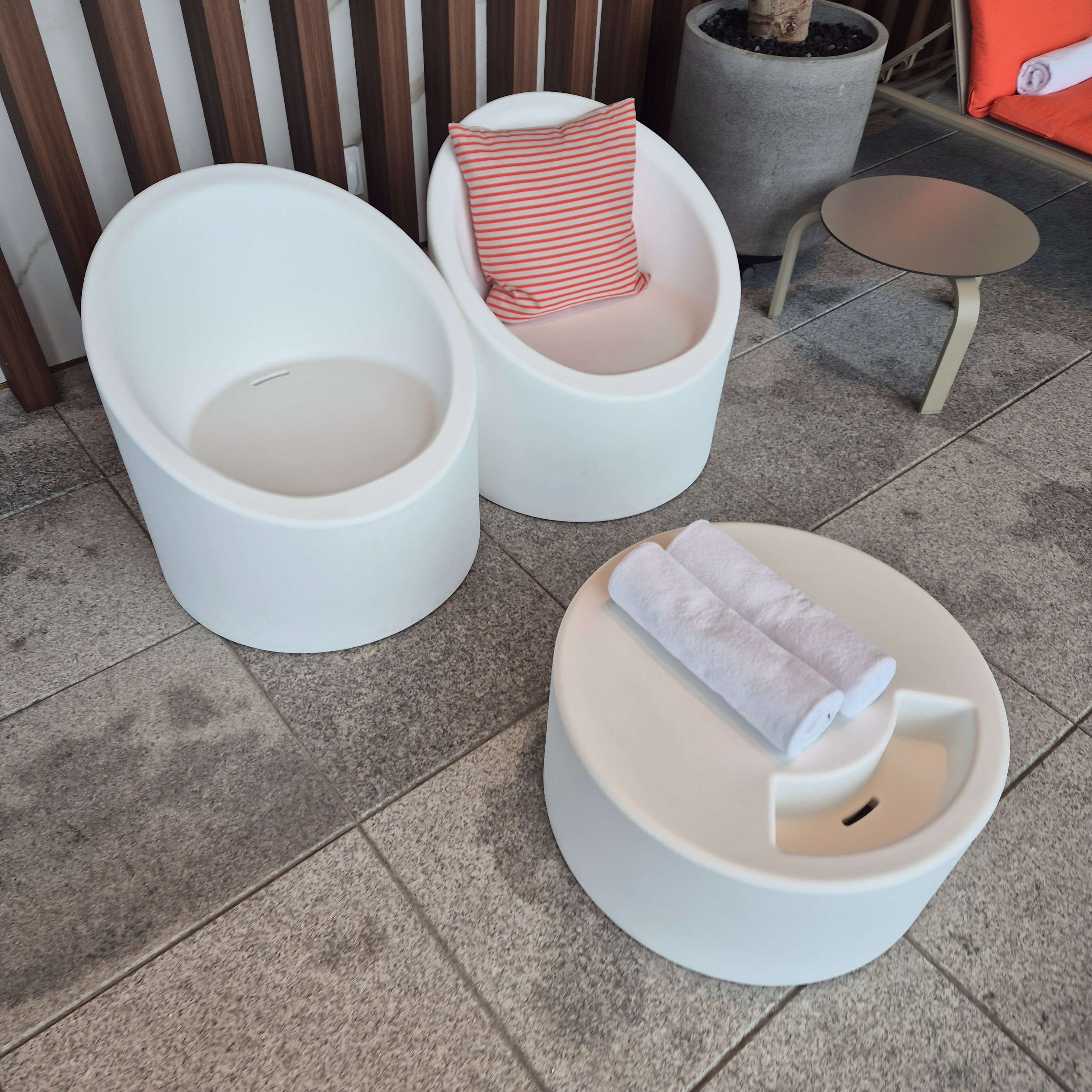 아이들과 함께 오신 가족분들도 보였고, 커플 분들도 계셨고, 그냥 호캉스처럼 즐기러 오신 분들도 계시더라고요. 자리마다 수건이 비치되어 있는 것도 센스가 좋다고 생각했어요.