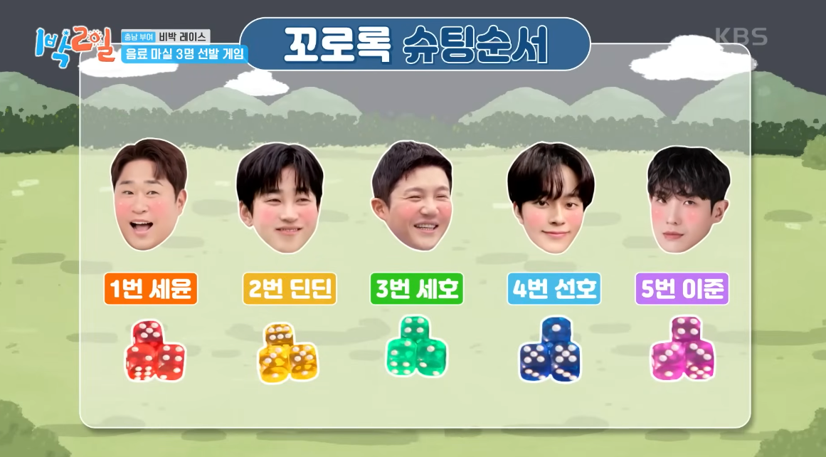 - 1박2일에서는 주사위를 했지만, 다른 걸로 진행하여도 문제없다.