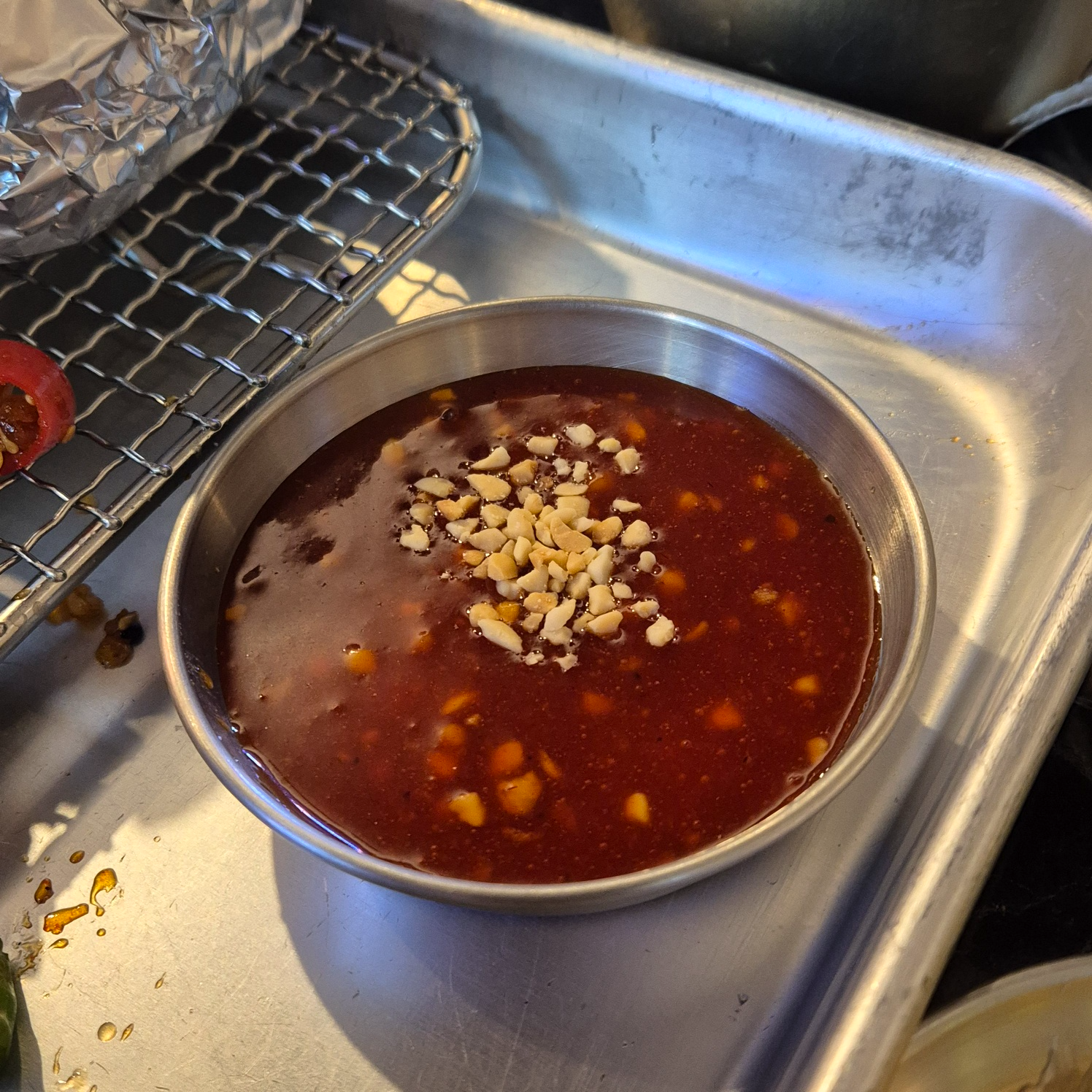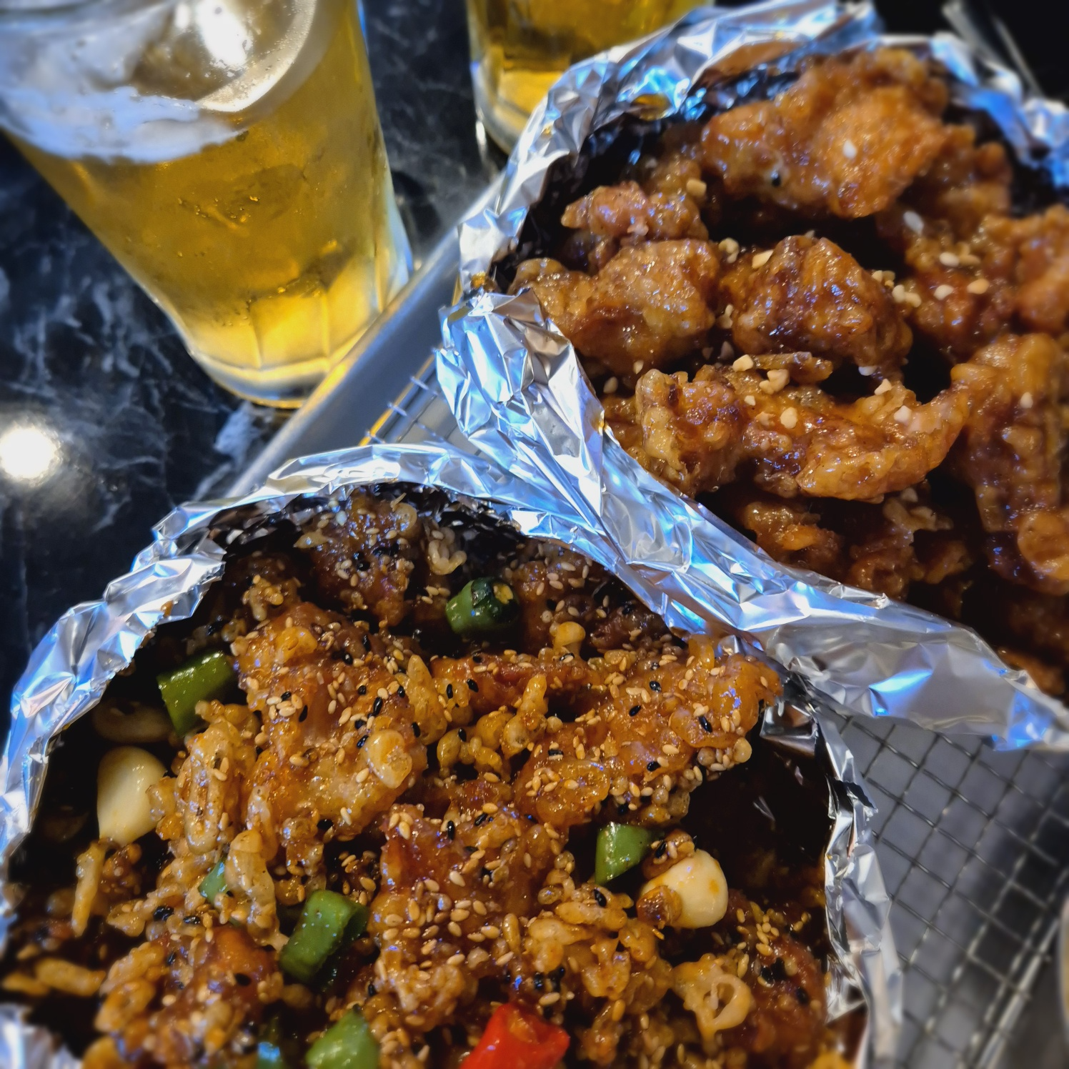 고추와 마늘이 들어가서 살짝 매콤함이 있는 치킨이다