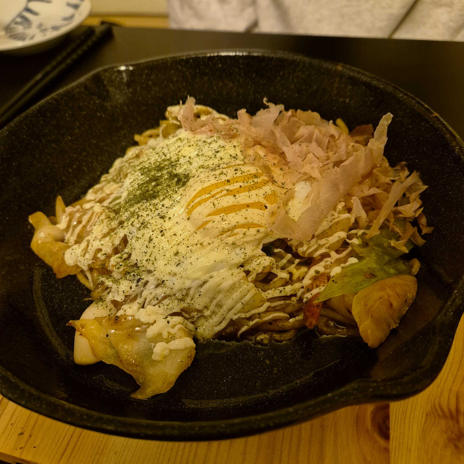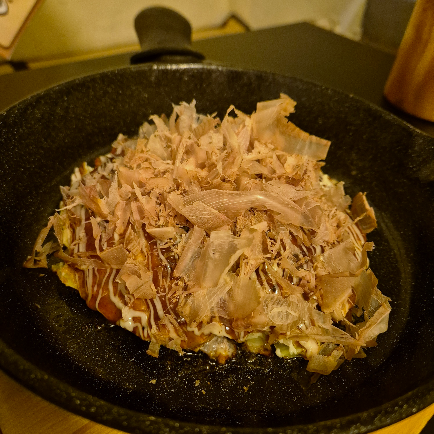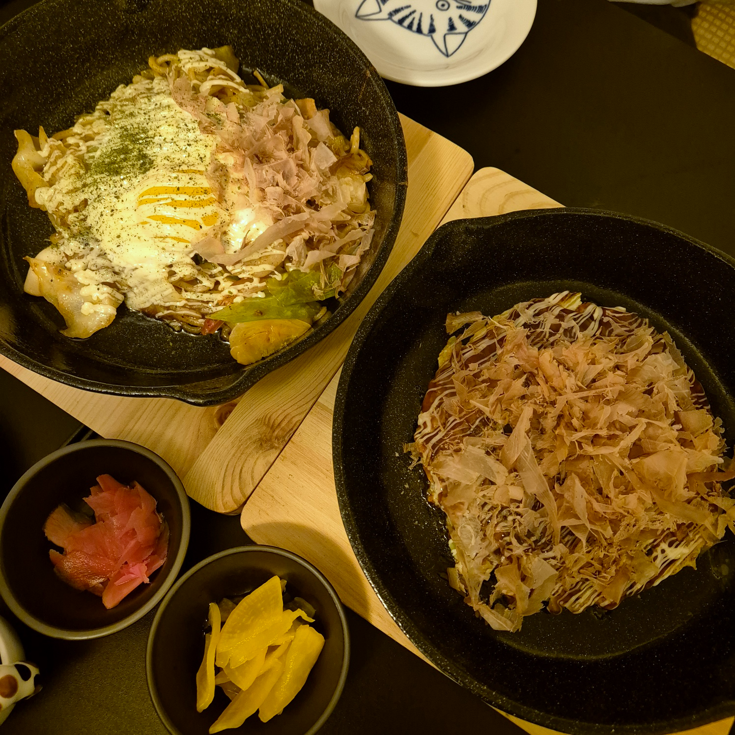 약간 달달함과 오코노미야끼의 두툼한 부침개느낌