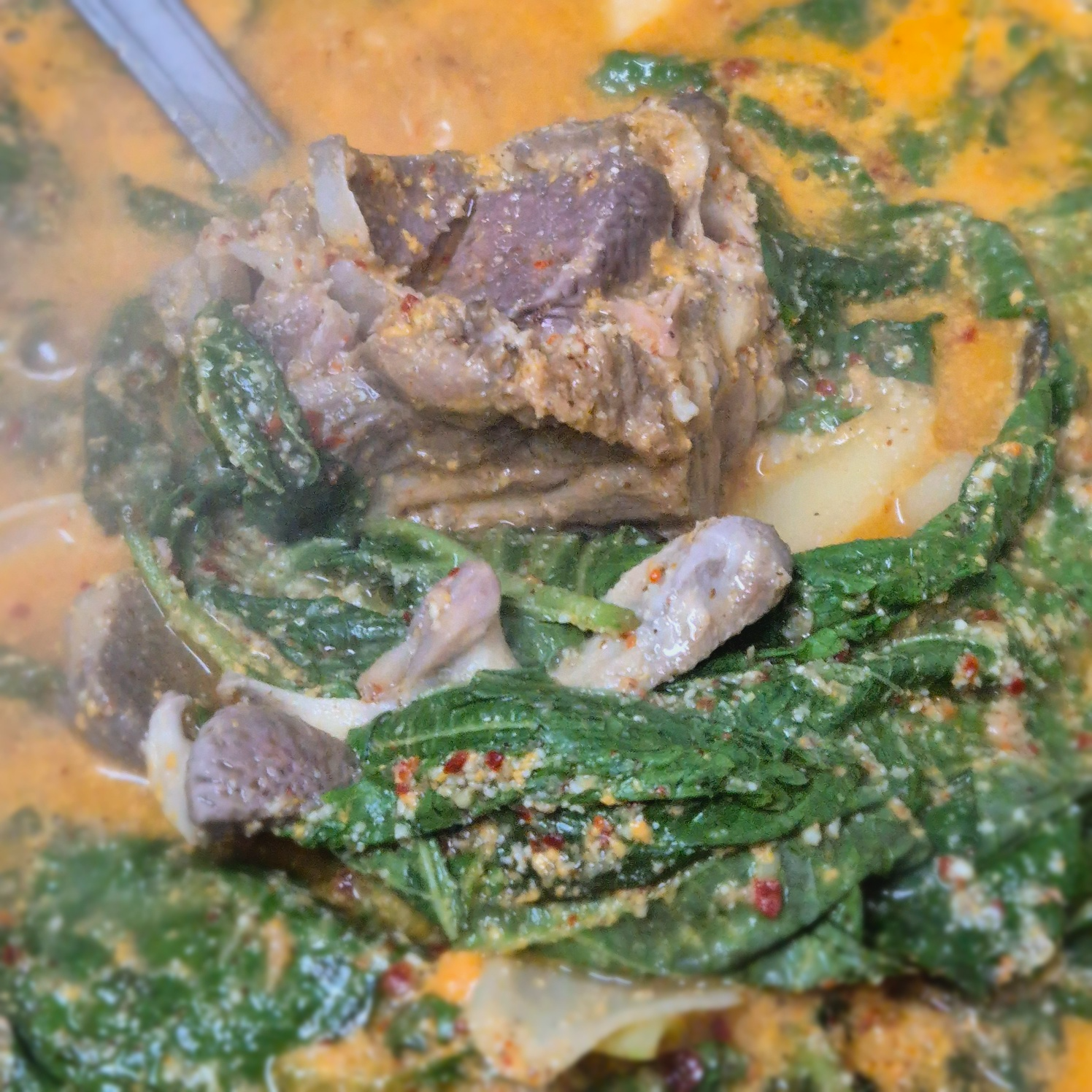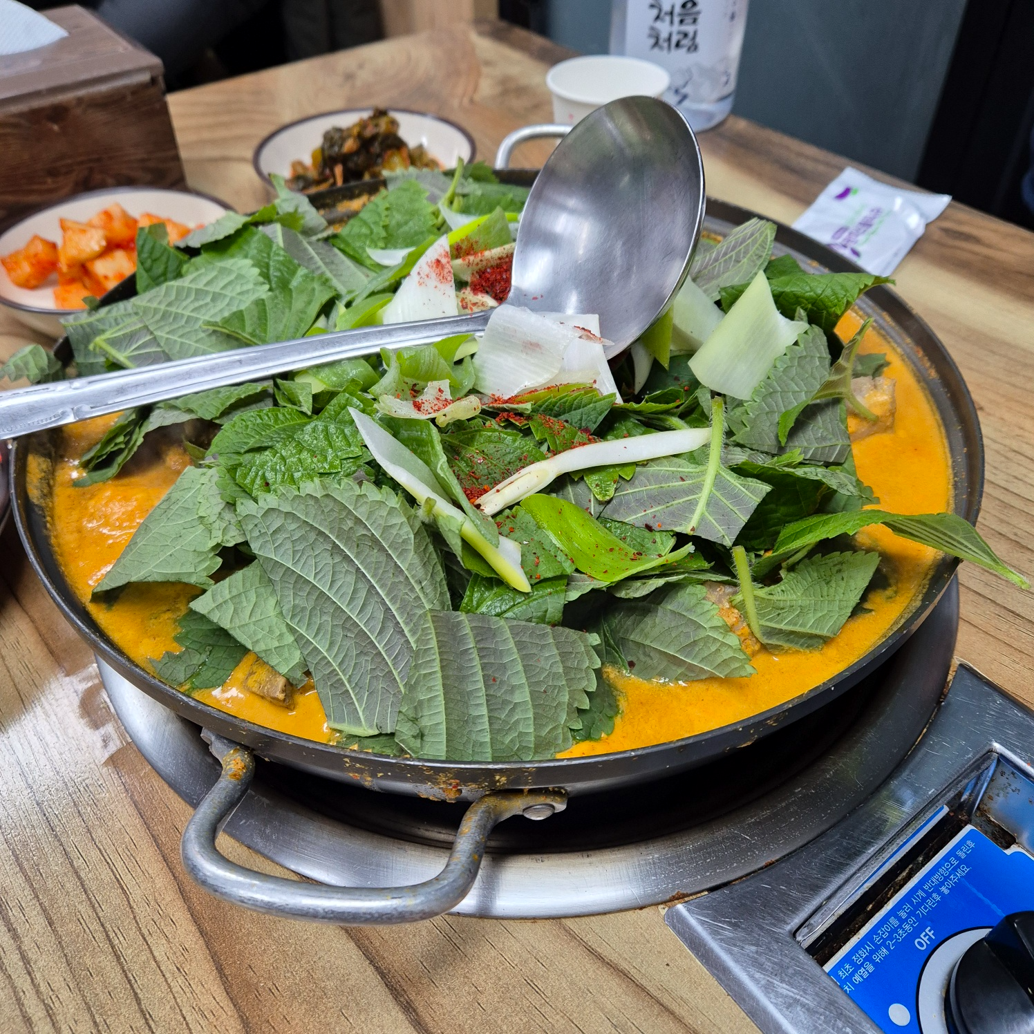 맛 : 깻잎향가득, 콩비지의 구수함과 진함 속 든든한 감자탕의 맛.