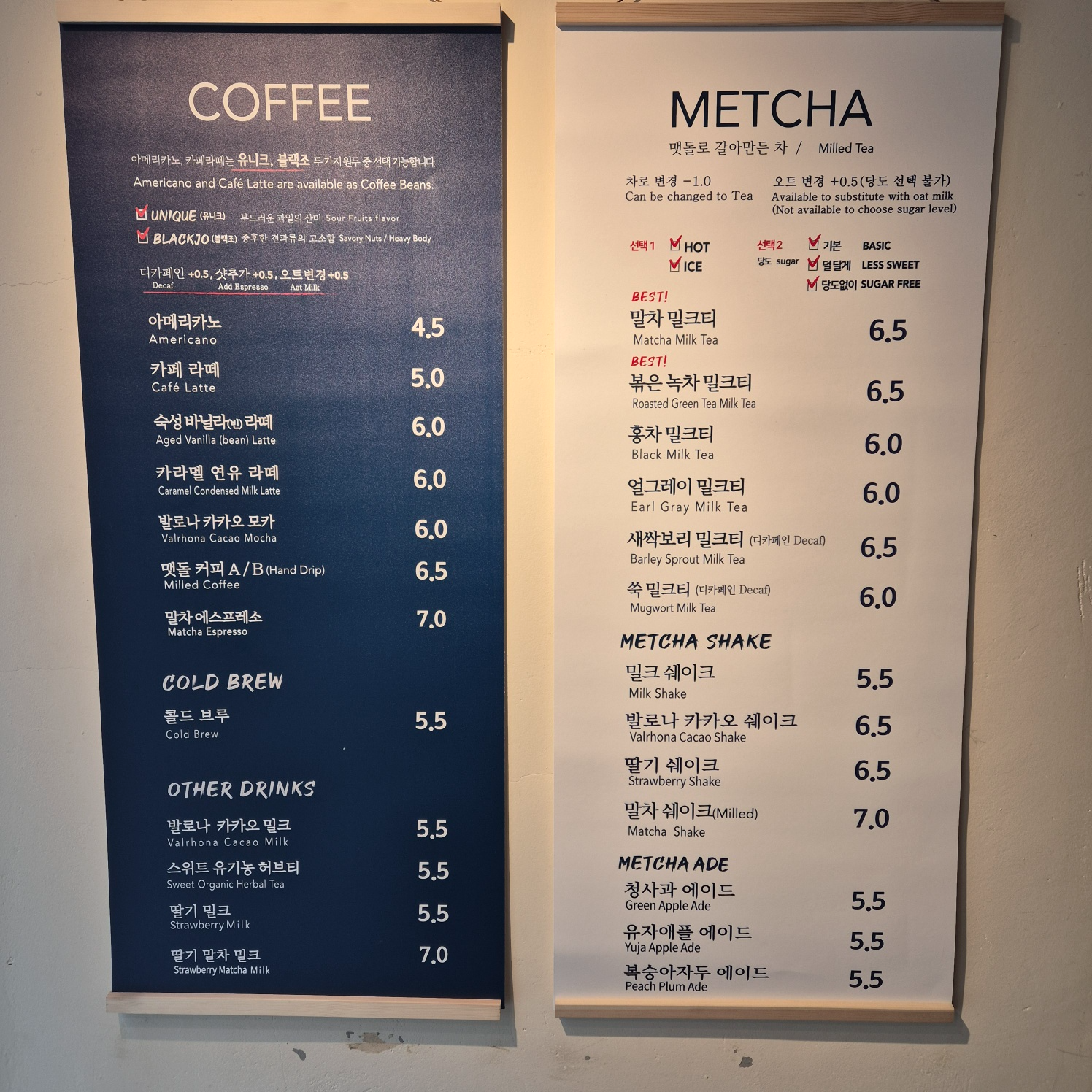 맷돌로 직접 갈은 커피와 밀크티가 있는듯 했다.
