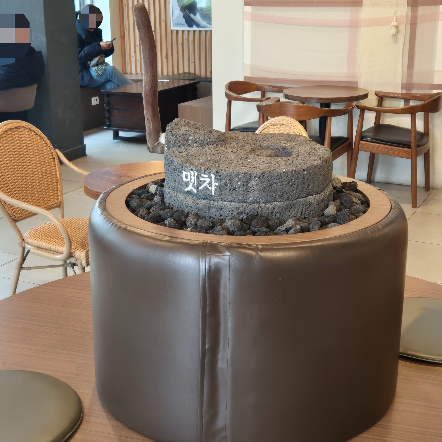 가운데 있는 맷돌도 심심할 수 있는 카페의 포인트랄까