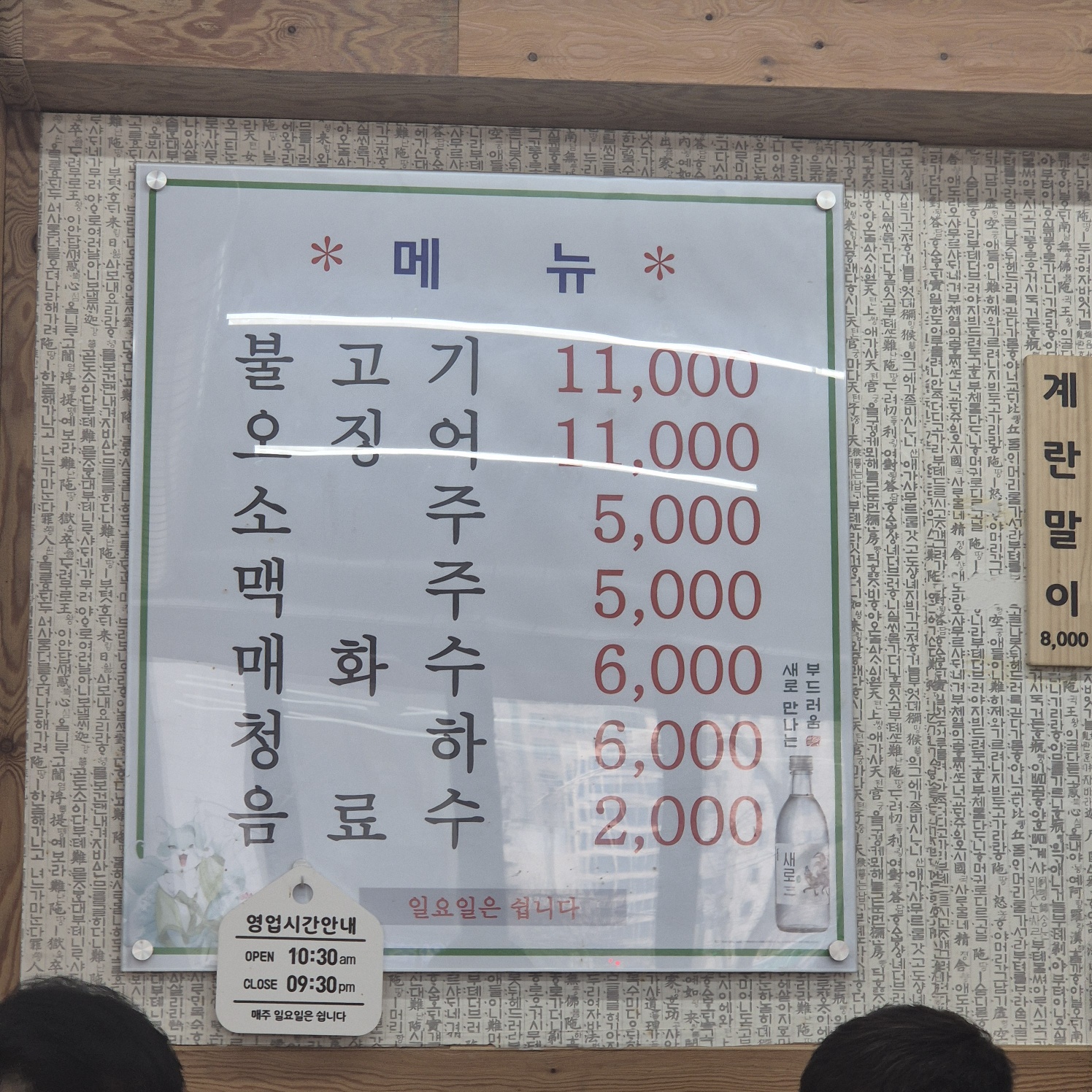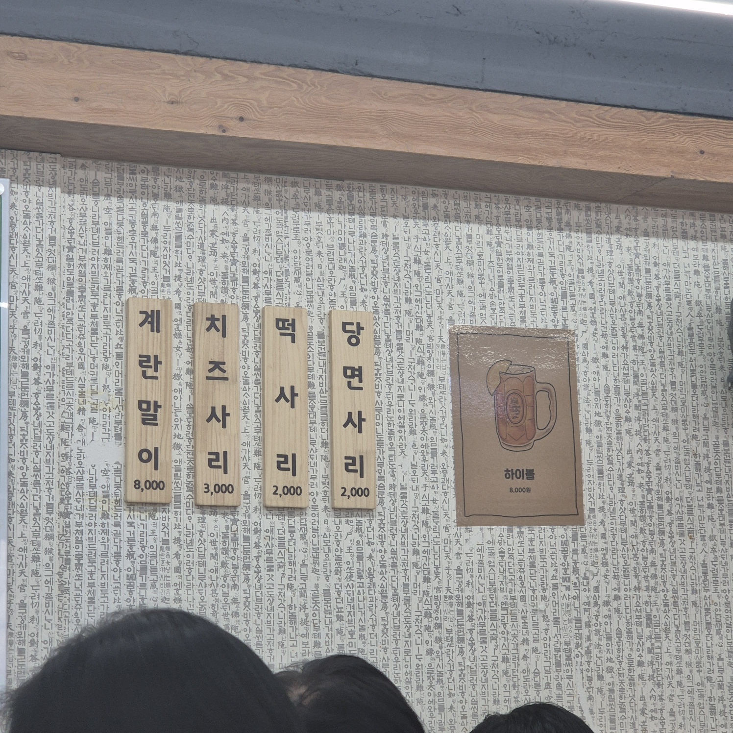 메뉴판과 주전부리