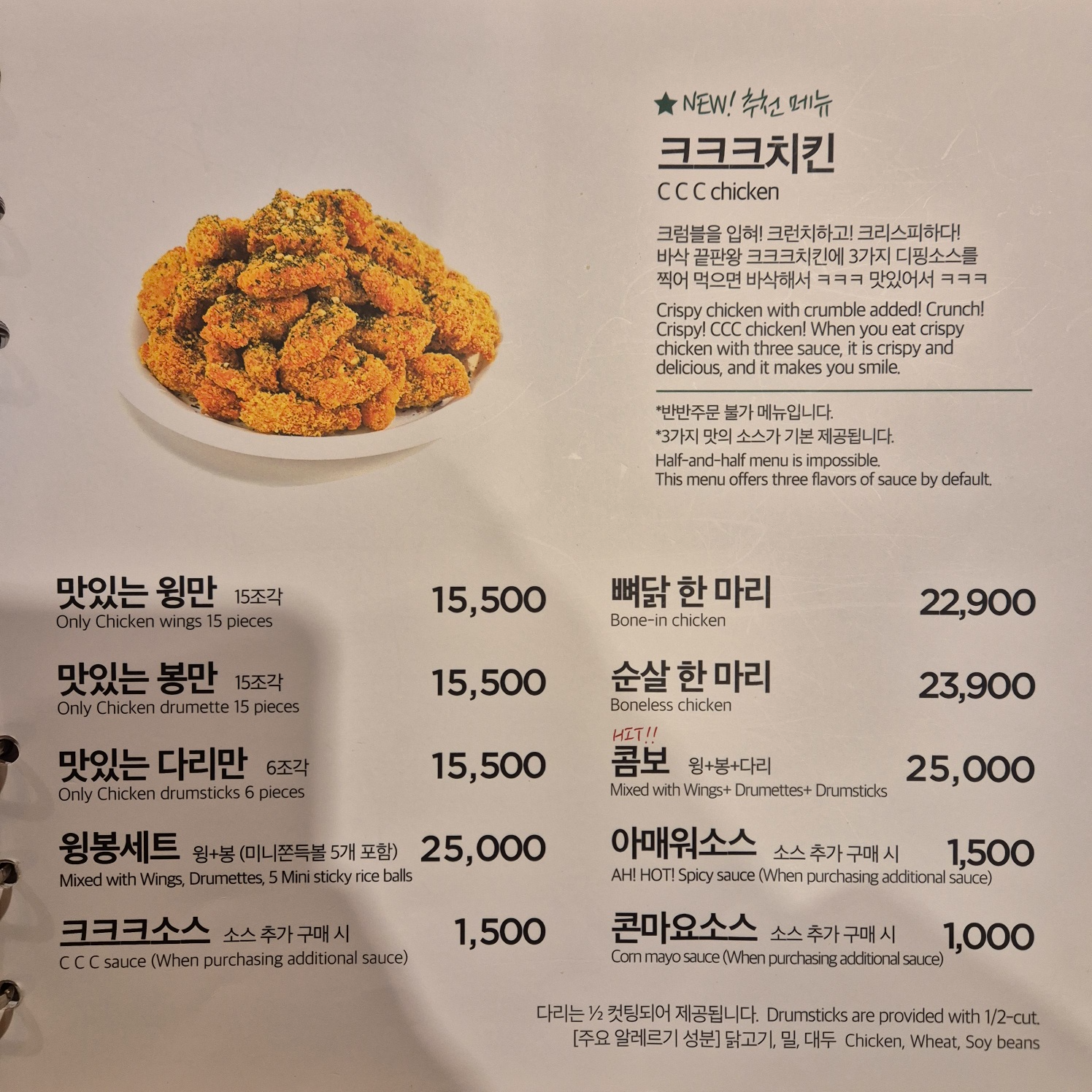 우리는 역시나 크크크치킨(순살)을 시켰다