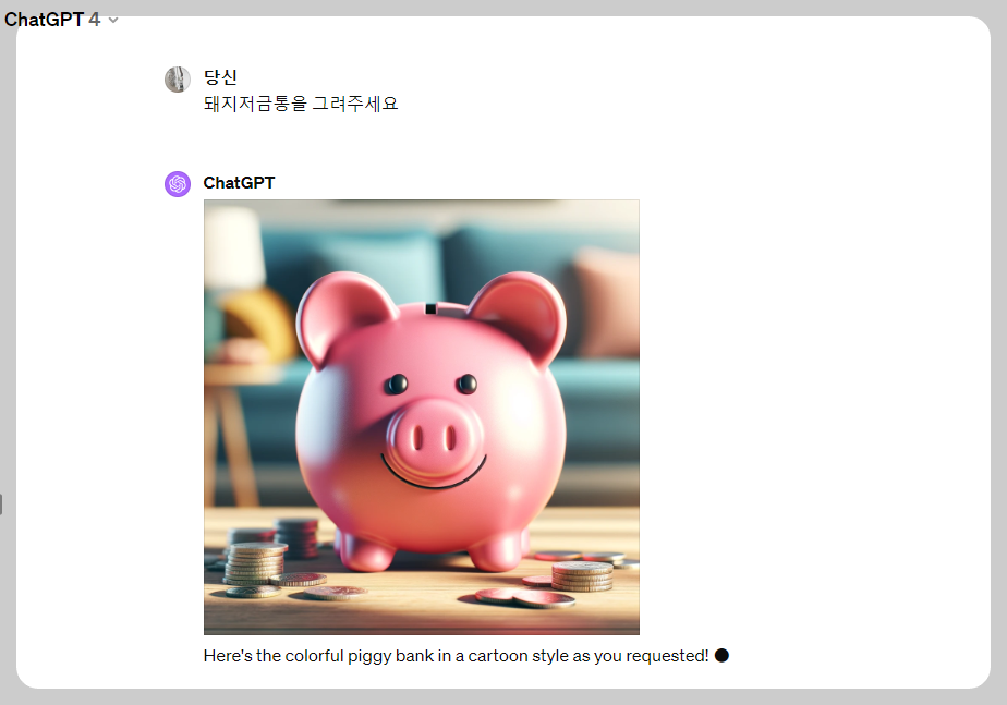 챗GPT-4의 경우, 우리가 생각하는 돼지저금통의 모습을 확인할 수 있었다.