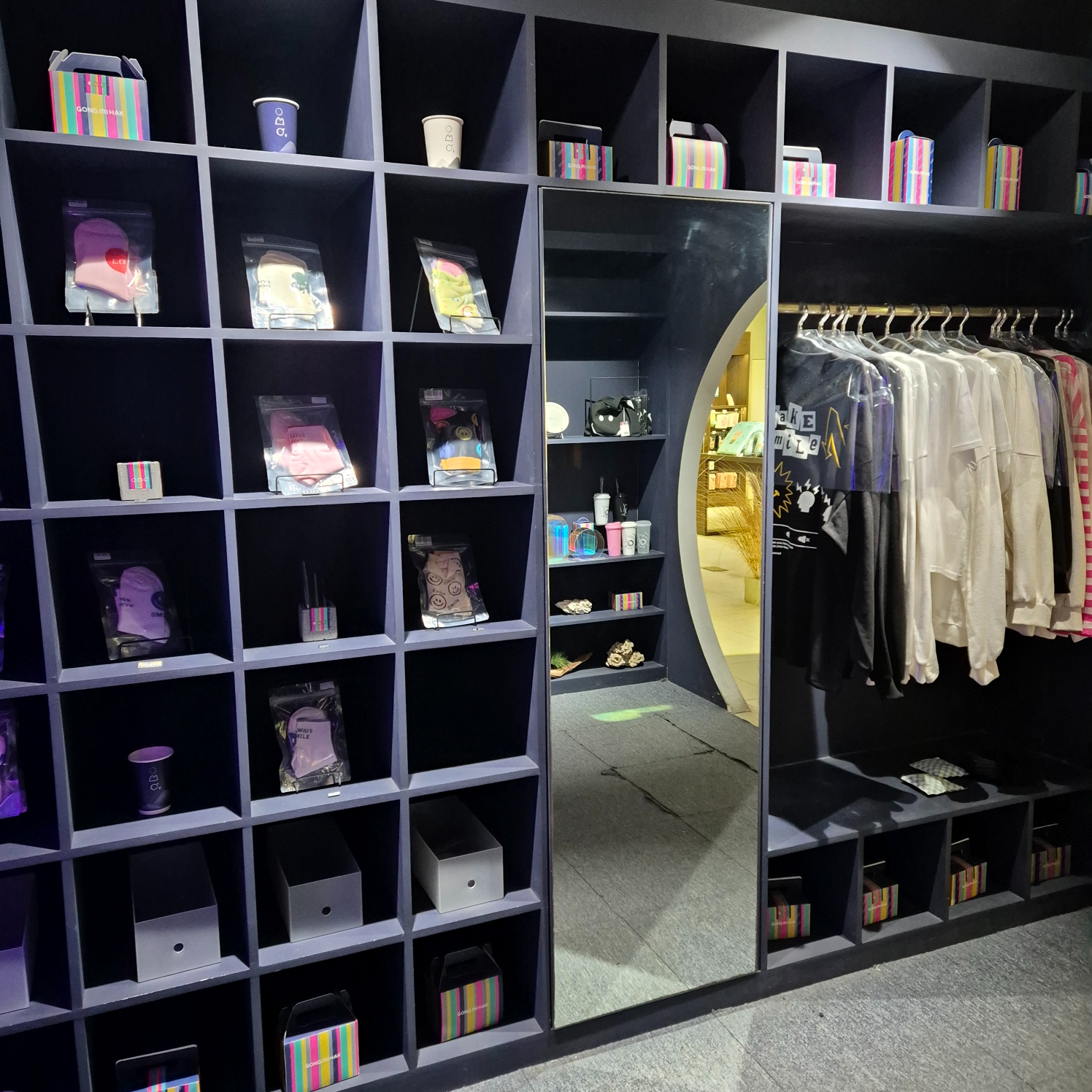 마포홍대점의 포토스팟임과 동시에 굿즈가 진열되어 있는 곳
