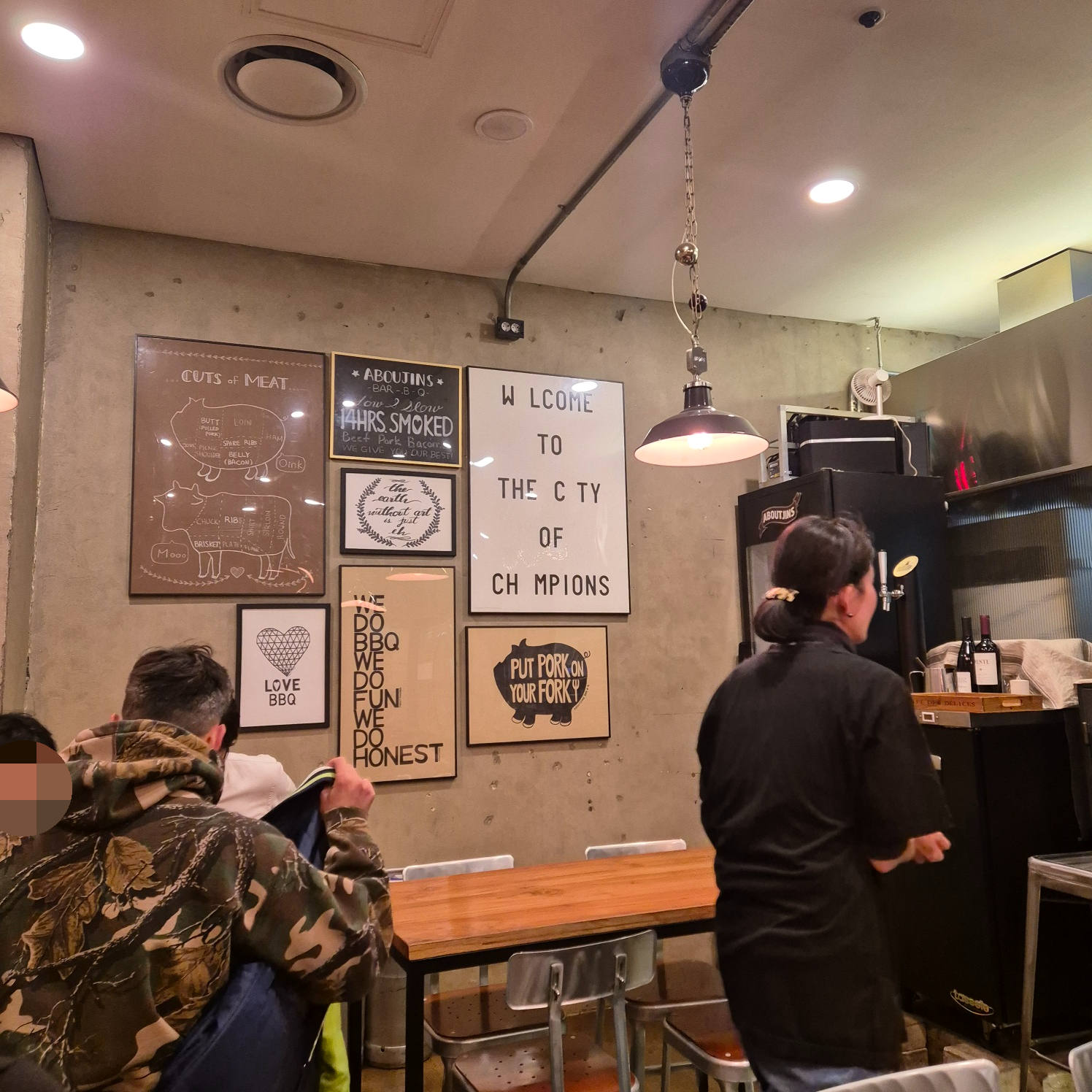 앉은 자리에서 바라본 입구쪽과 벽면을 찍어보았다.