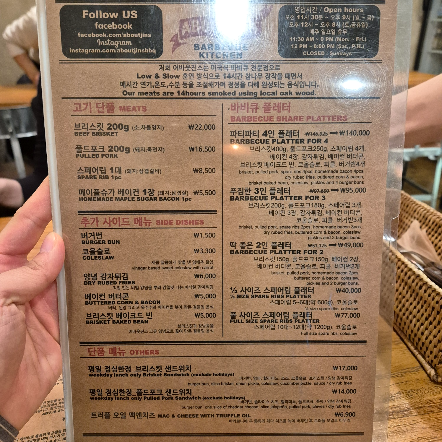 육즙가득 갓나온 부드러운 브리스킷을 시작으로 직접만드신 소스(?)로 달달짭짜롬 간이 벤 베이컨