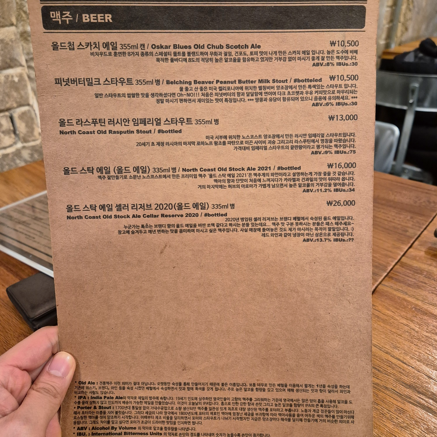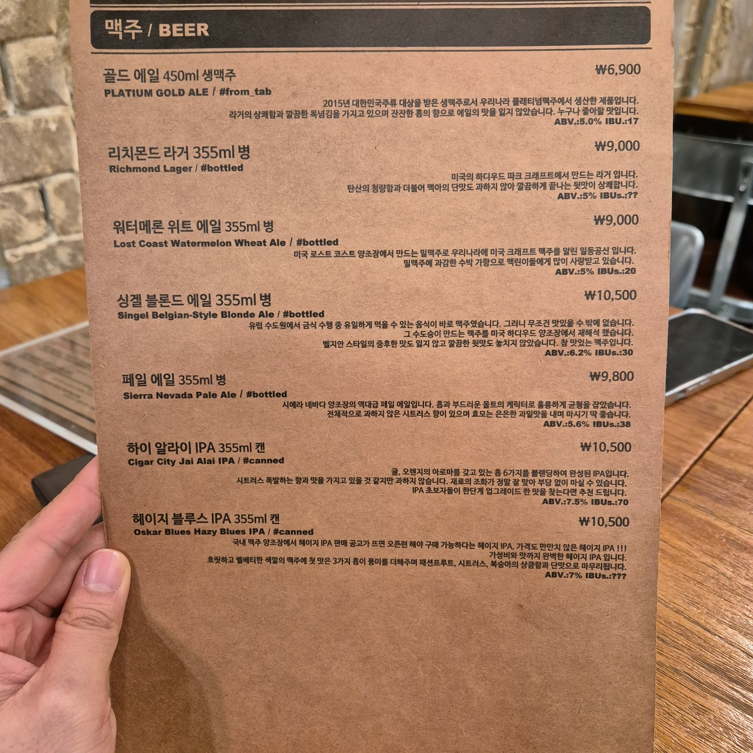 오늘 너무나도 땡겼던 맥주까지. 맥주의 종류가 생각보다 많아 고민이 되었지만, 깔끔한 에일 당첨!