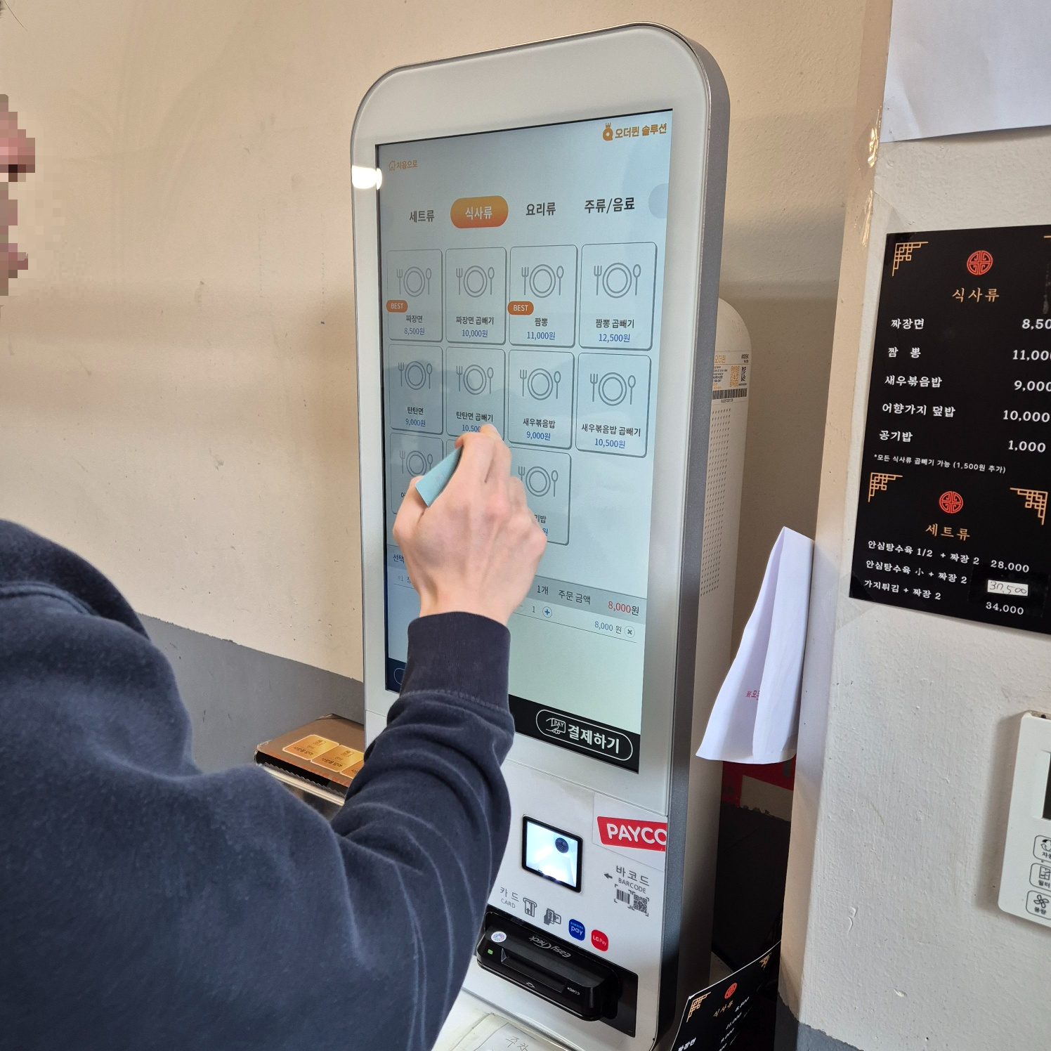 주문은 키오스크로 진행하며, 자리를 잡고 주문한 뒤 앉아있으면 된다.