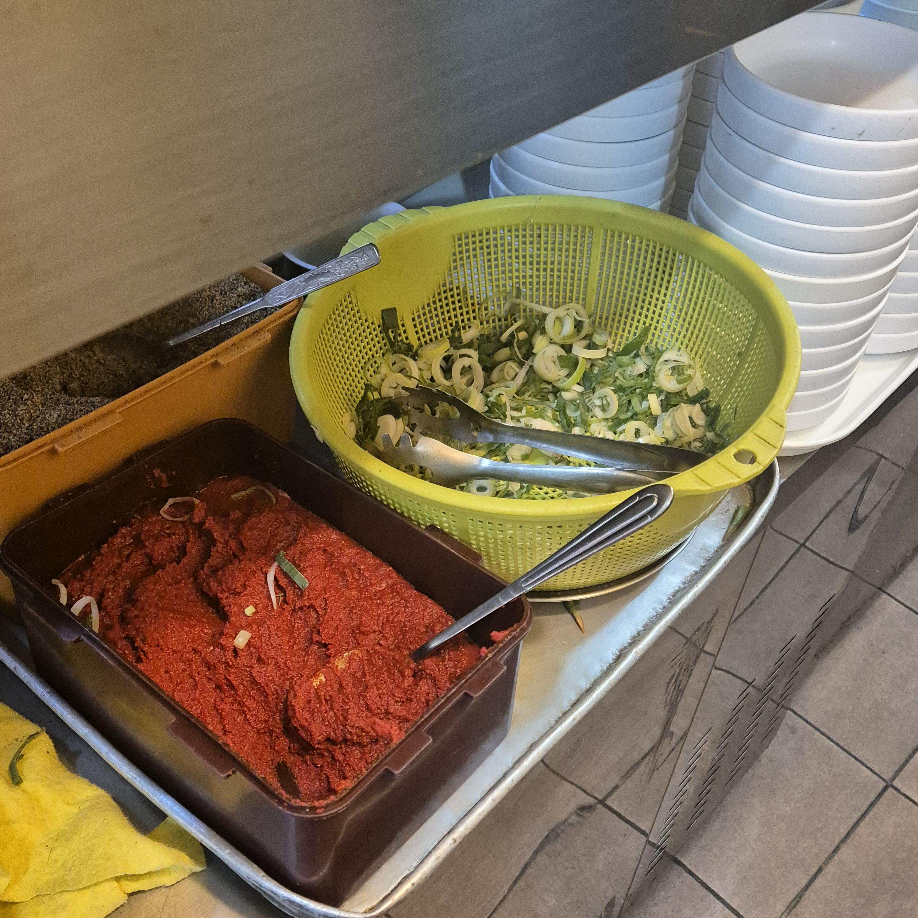 안에서 순대국, 해장국 등 을 해서 딱 주시면, 이모님이 다데기를 탁탁 ! 파를 스윽 집어 넣어주신뒤 서빙해주신다. 탁탁 하시는 소리를 옆에서 듣고있으면 생각보다 꽤나 경쾌했다.