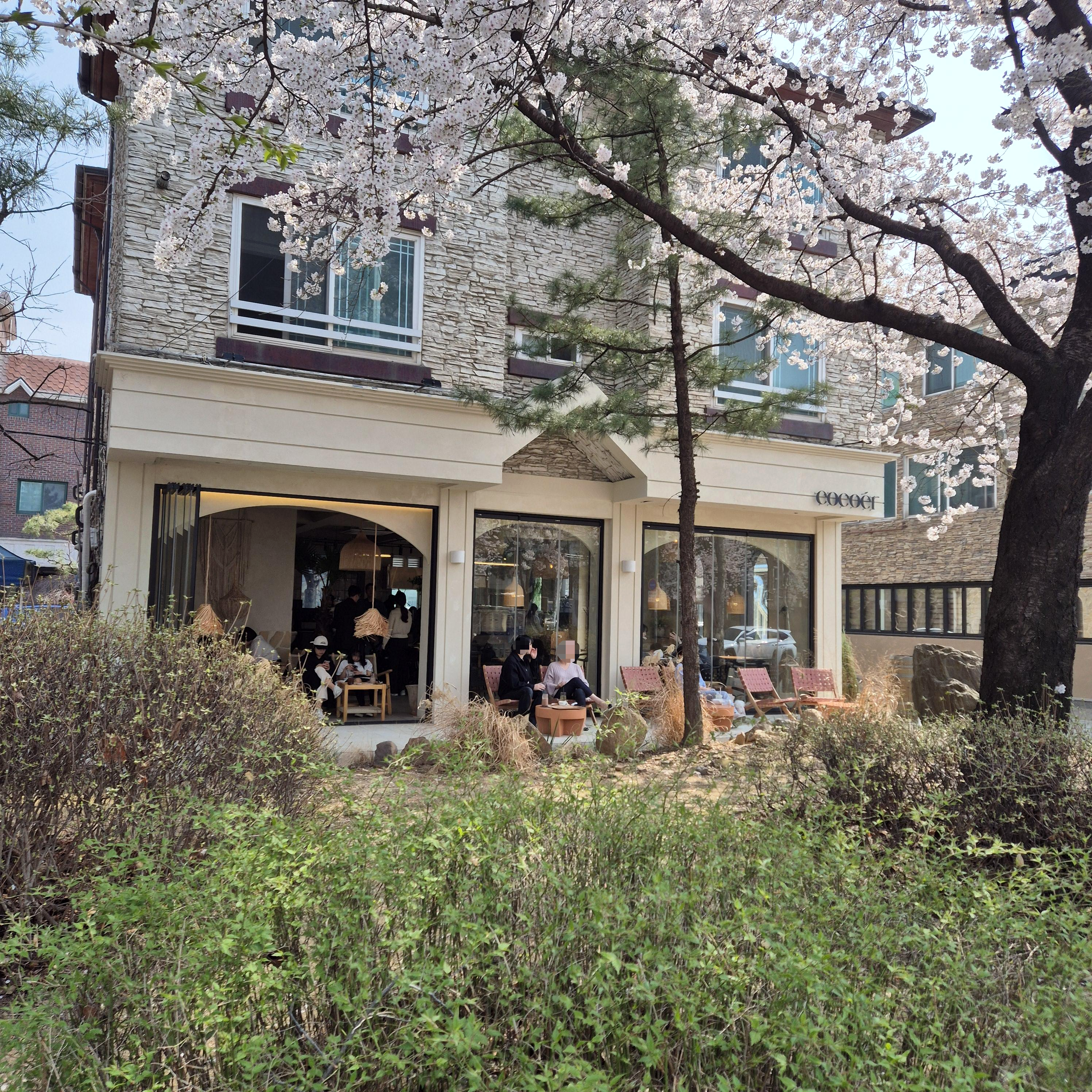 대로변에서 바라본 코코에르의 모습이다. 이 말은 반대로 코코에르 내부에서도 대로변을 볼 수 있다는 의미인데, 완벽한 뷰는 아니었지만, 벚꽃이 만개했던 이날만큼은 최고의 뷰를 만끽할 수 있었다. 그렇게 밖을 구경하고 내부로 들어갔다.
