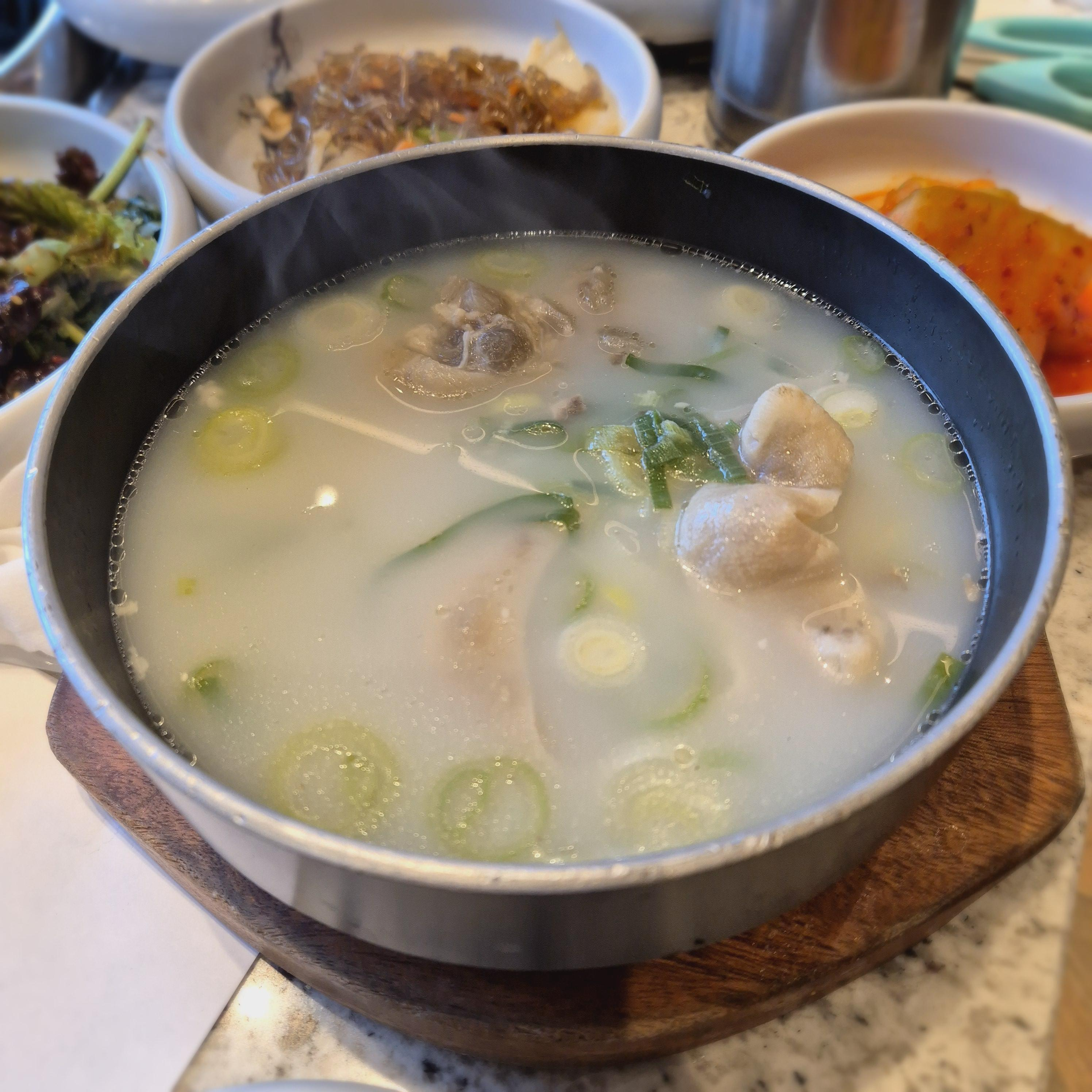 어머니께서 뼈가 좀 안 좋으셔서 시킨 우족탕인데, 진하고 깊은 맛이 일품이었다. 사진으로는 잘 안 보이지만, 거의 탕 전체를 채울 만큼 큼지막한 뼈가 통째로 가득 차있다.