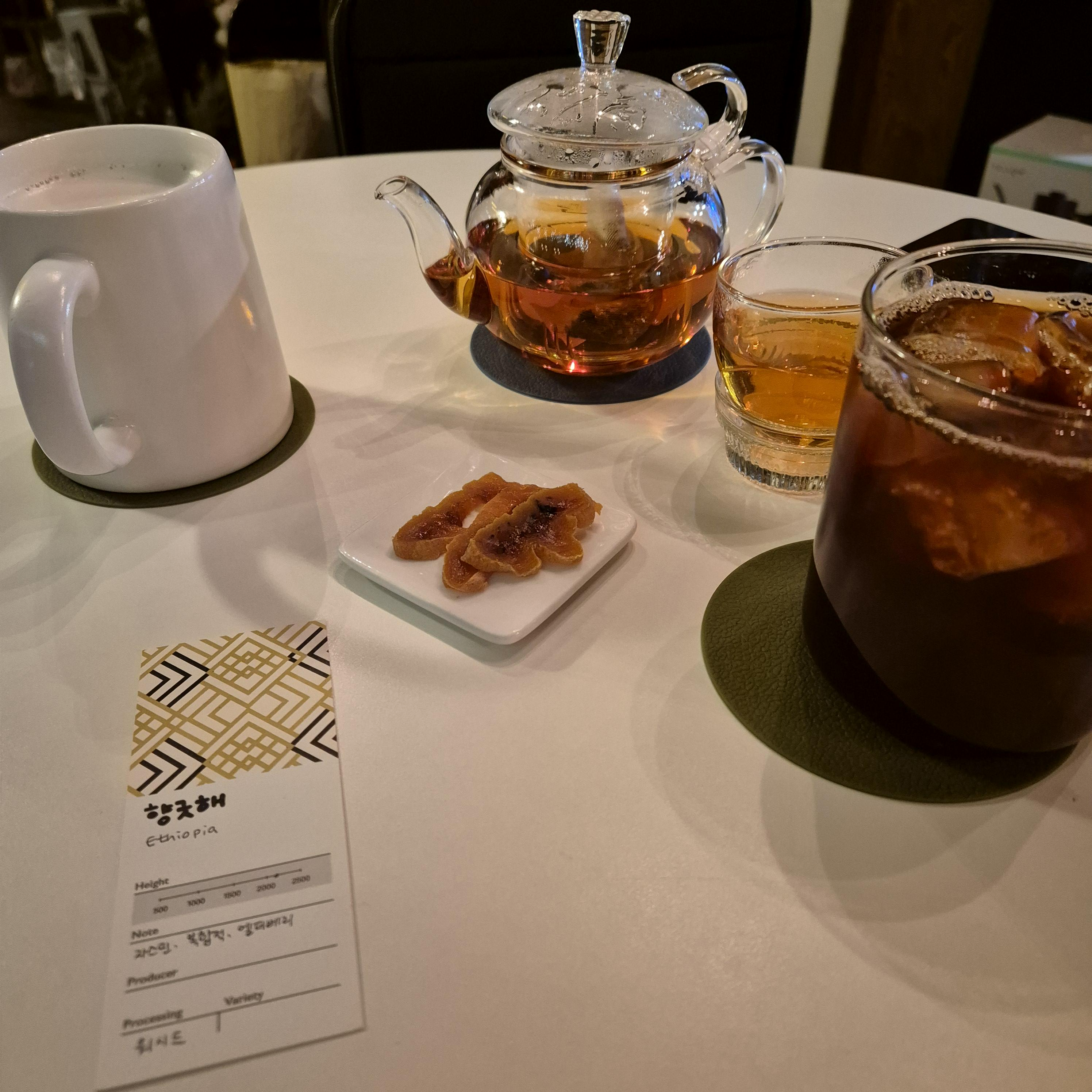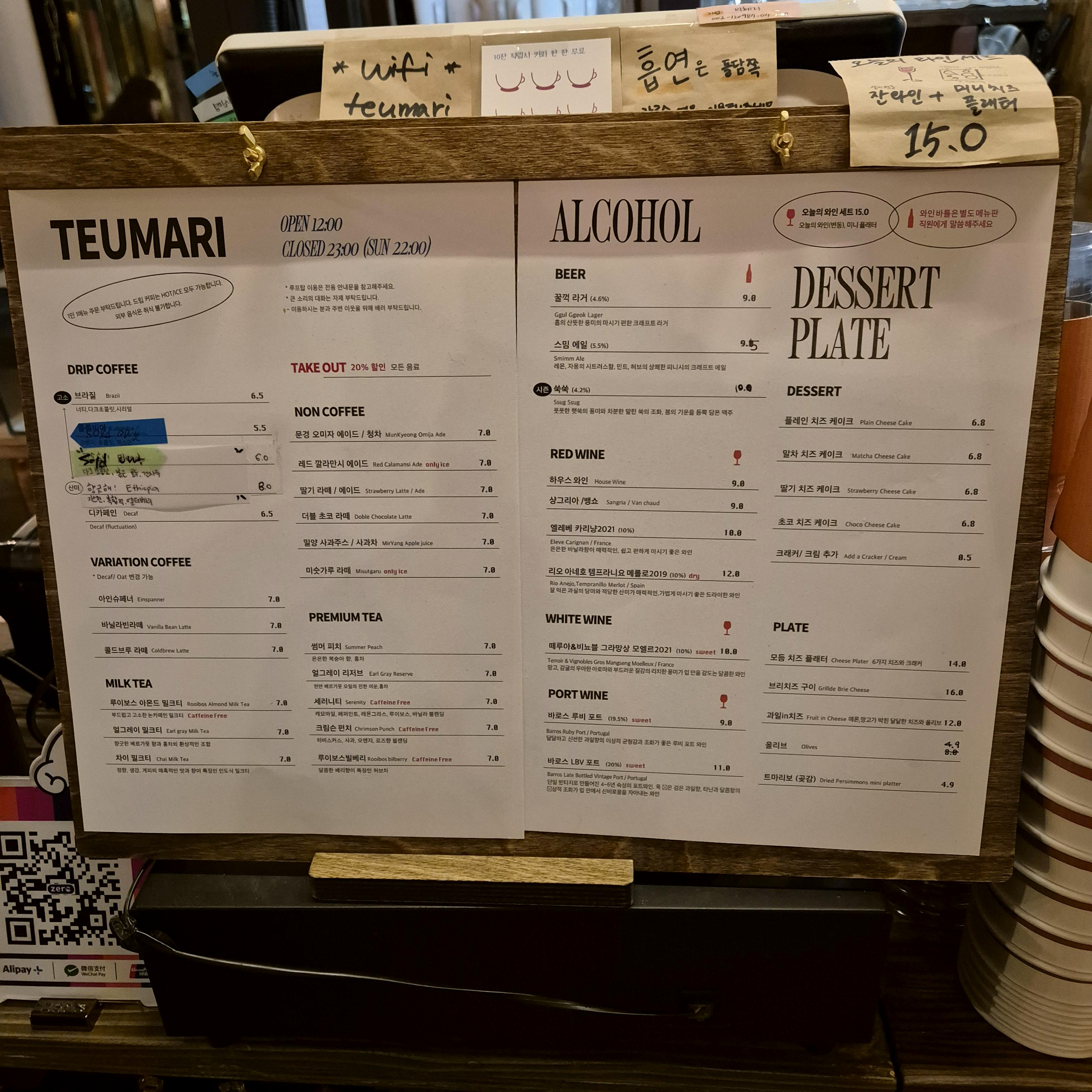 커피부터 와인과 맥주 그리고 플래터까지 단순 카페라고 하기엔 상당히 다양한 메뉴였다. 싼 맛에 아이스 아메리카노를 먹는 필자는 단순한 아메리카노는 없고 조금 값이 나가는 드립커피만 있는 것을 보고 조금은 아쉬웠다. 서순라길의 자리값이라 생각이 들었지만, 산미 있는 게 8천 원 이라니. 그래도 결국 필자는 커알못이기도하고 아무거나 다 잘 먹기 때문에 산미 있는 향긋해 드립커피를 시켜보았다.