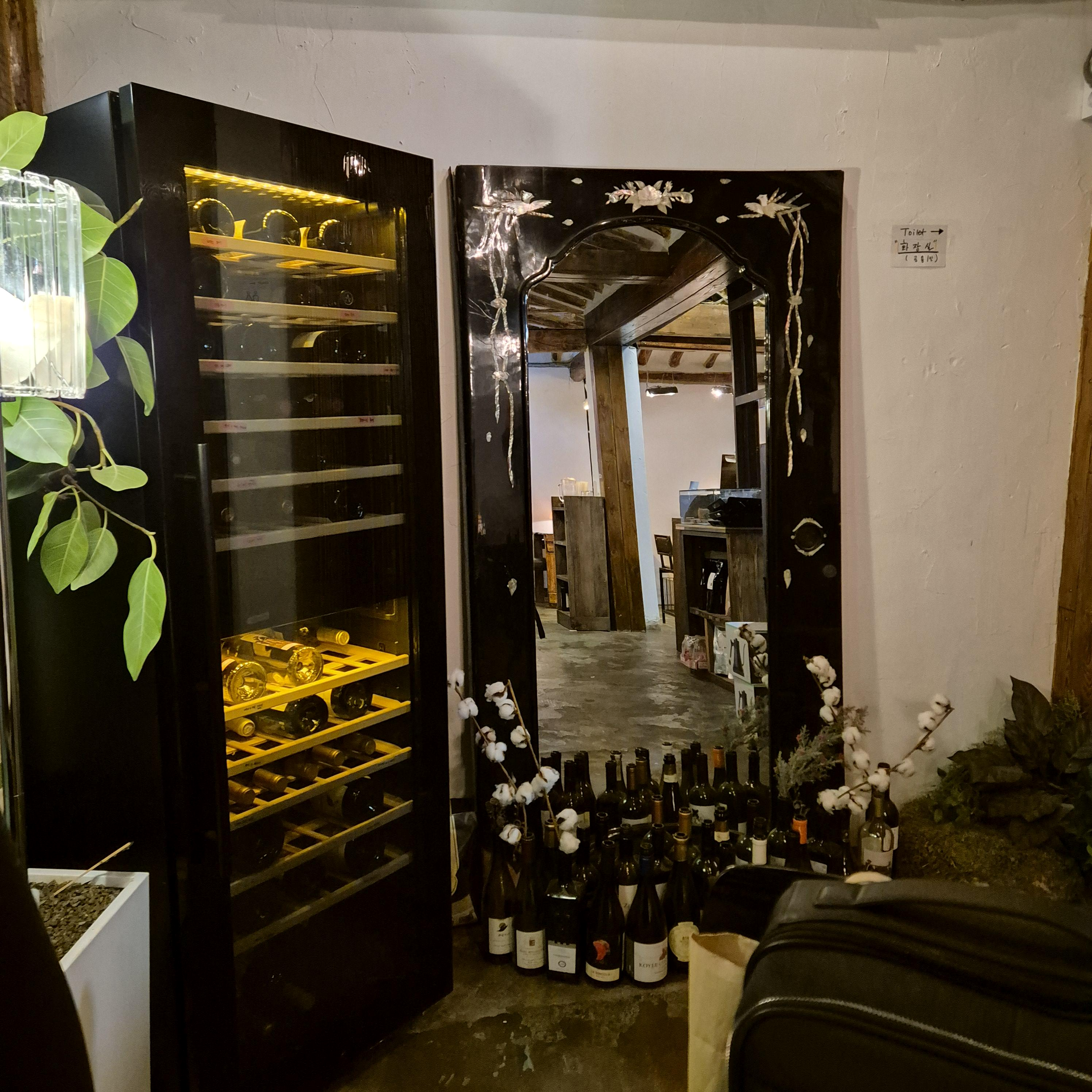 화장실 가는 쪽에 있는 자개장무늬로 꾸며진 멋스러운 거울이 있는데, 여기가 트마리의 포토존인지 많은 분들이 여기서 사진을 찍고 지나가셨다. 우리 일행은 그 바로 앞에 앉았는데, 본의 아니게 찍고 들어가셔서 다시 나와서 찍는 분도 적지 않게 볼 수 있어서 재밌었다.
