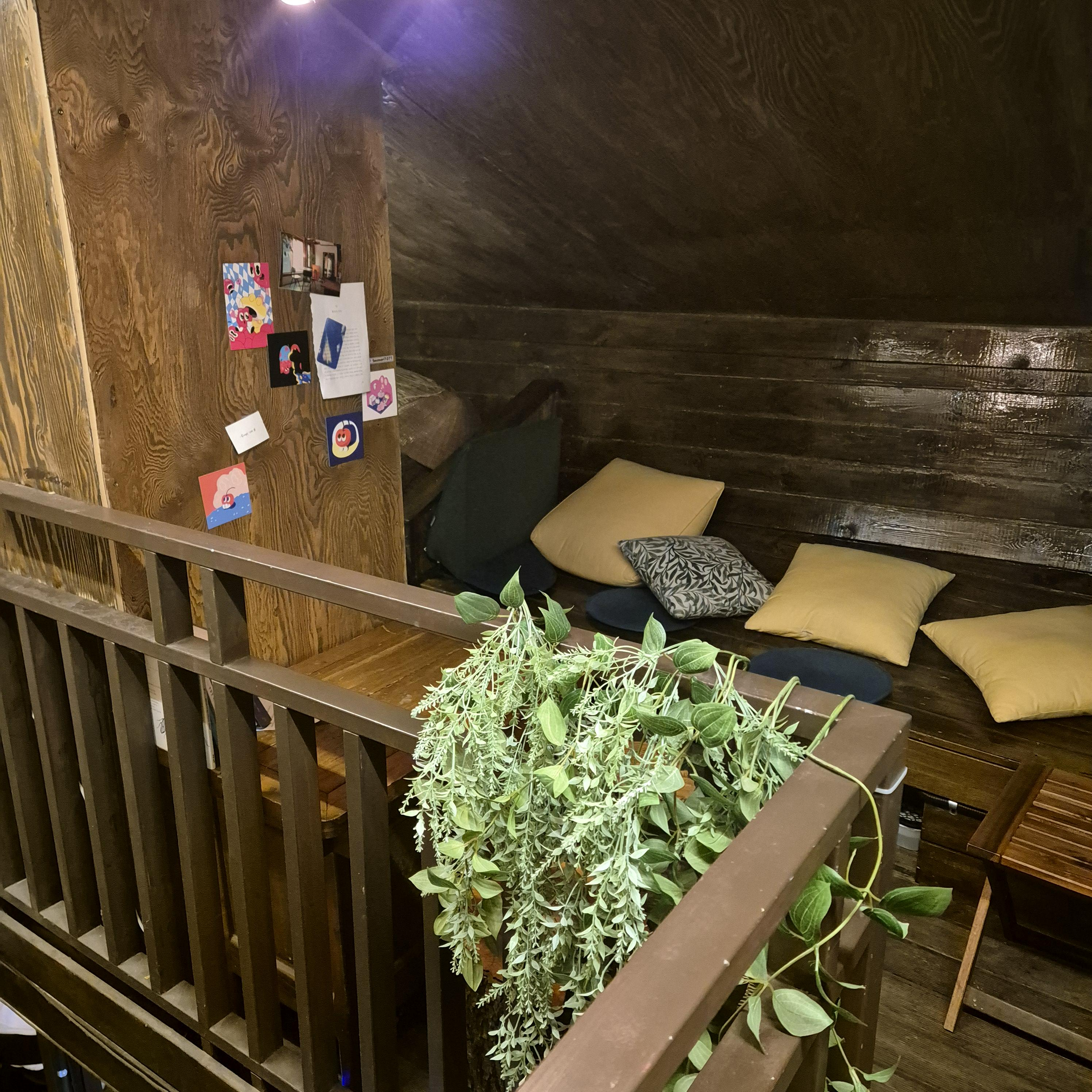 복층에는 한 2팀 정도 앉을 수 있는 공간이 있는데, 앉아계신 분들은 딱히 없었던 것 같다. 사람들이 많이 왔다 갔다 거리기도 하고, 저 사다리를 통해 루프탑으로 나가면 더 좋고 이쁜 자리가 있기 때문이었다.