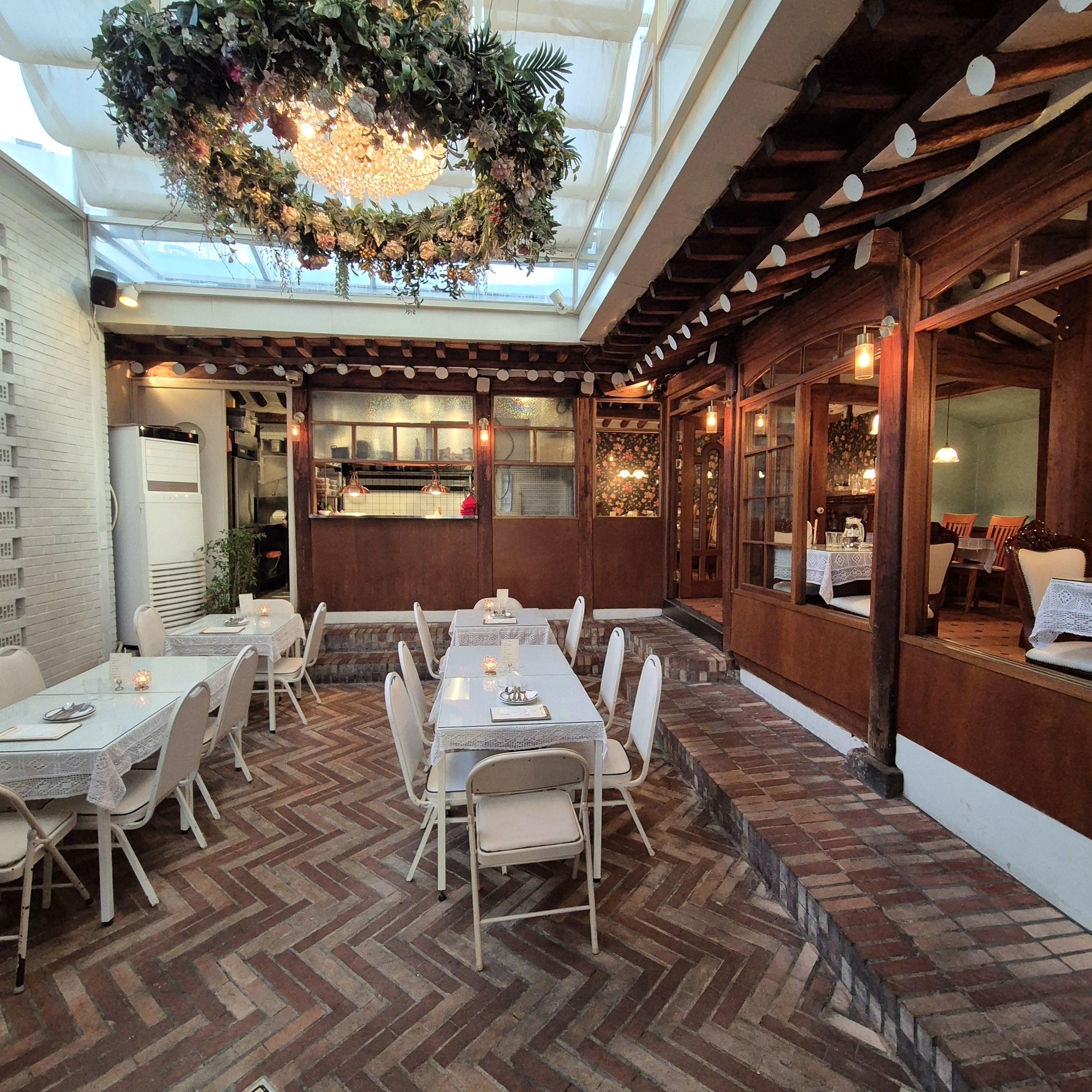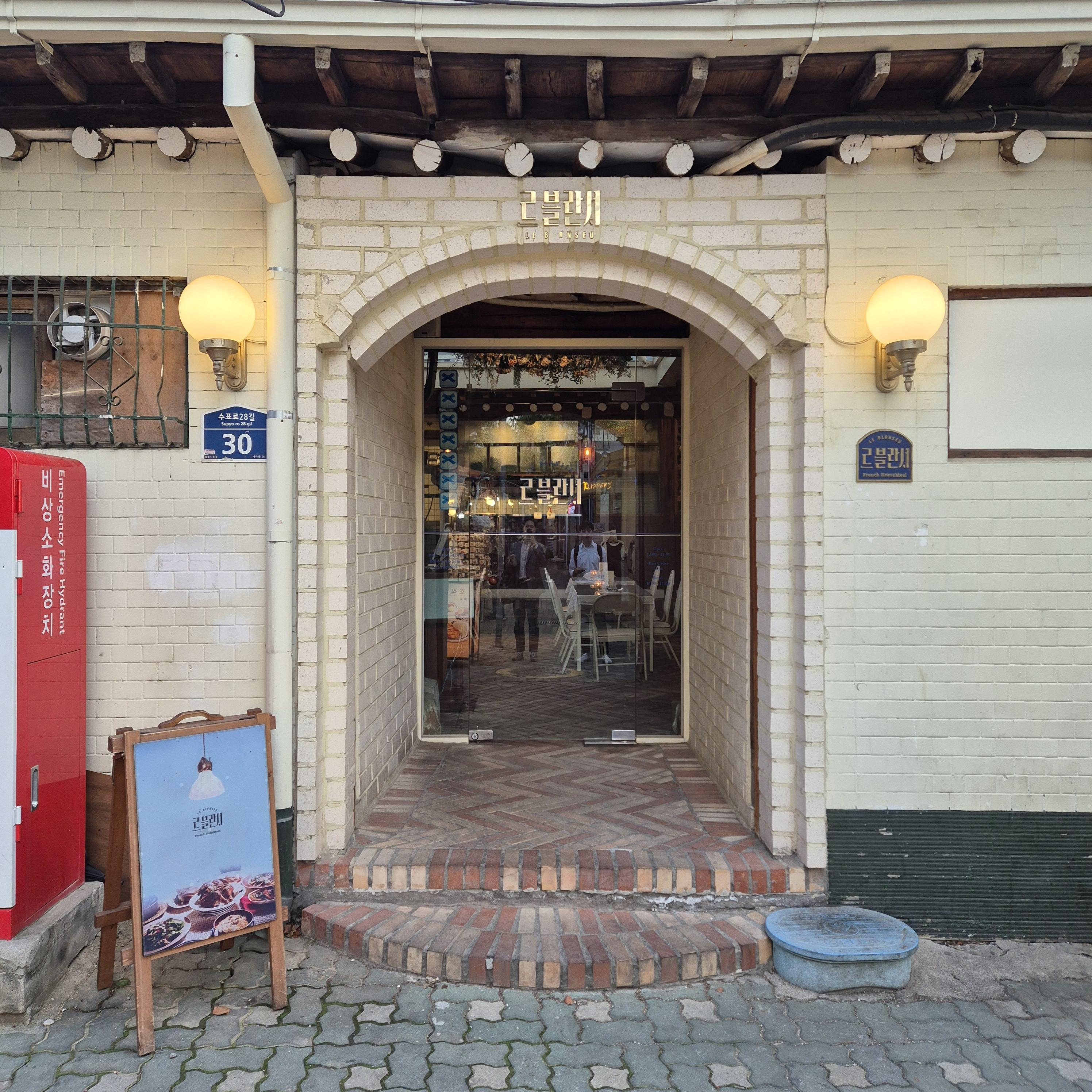 깔끔한 아이보리 칼러의 벽돌에 한옥분위기의 외관 인테리어가 좋았다. 최근 광해 쇼츠를 봐서 그런가 한옥, 사극 이런 옛것에 마음이 간다.