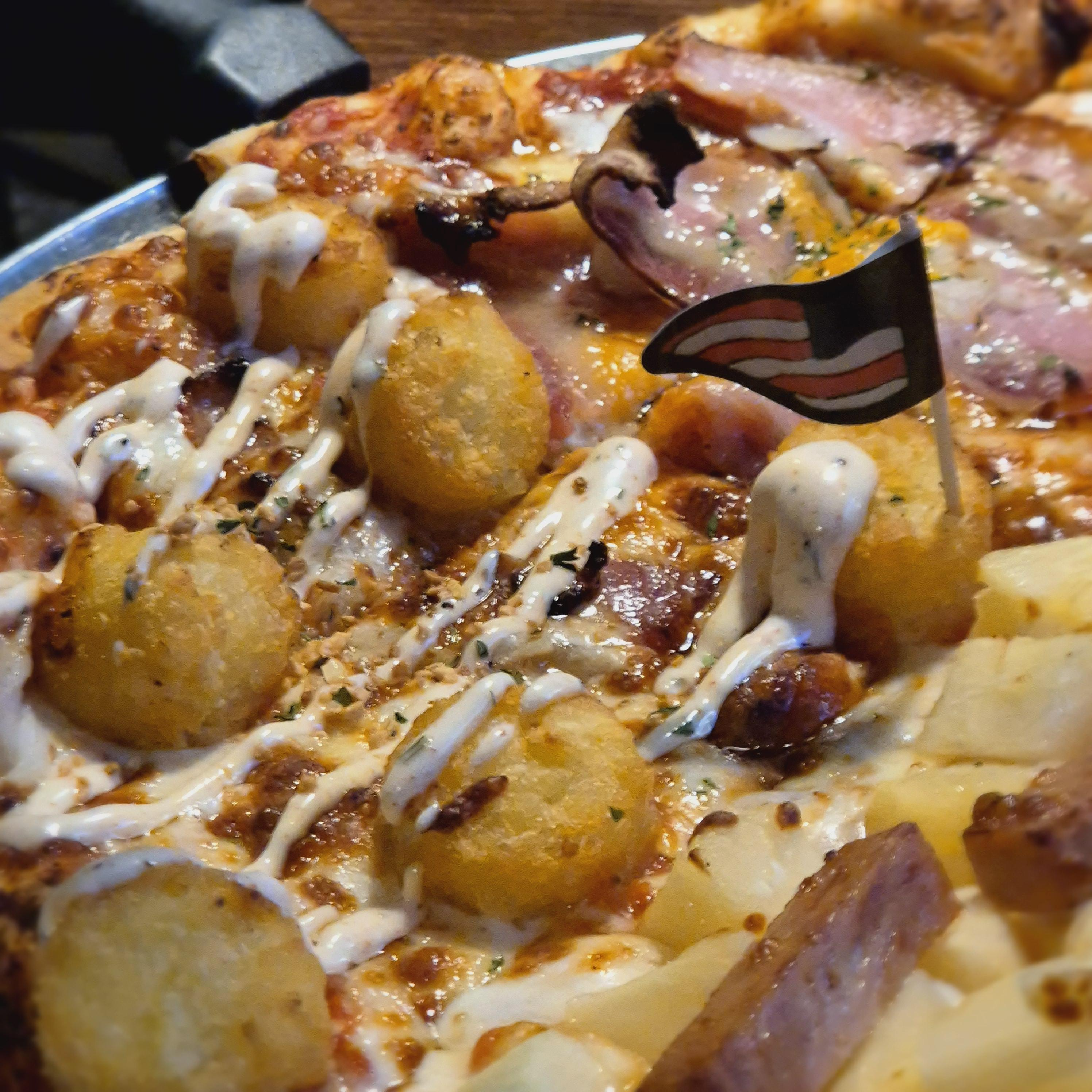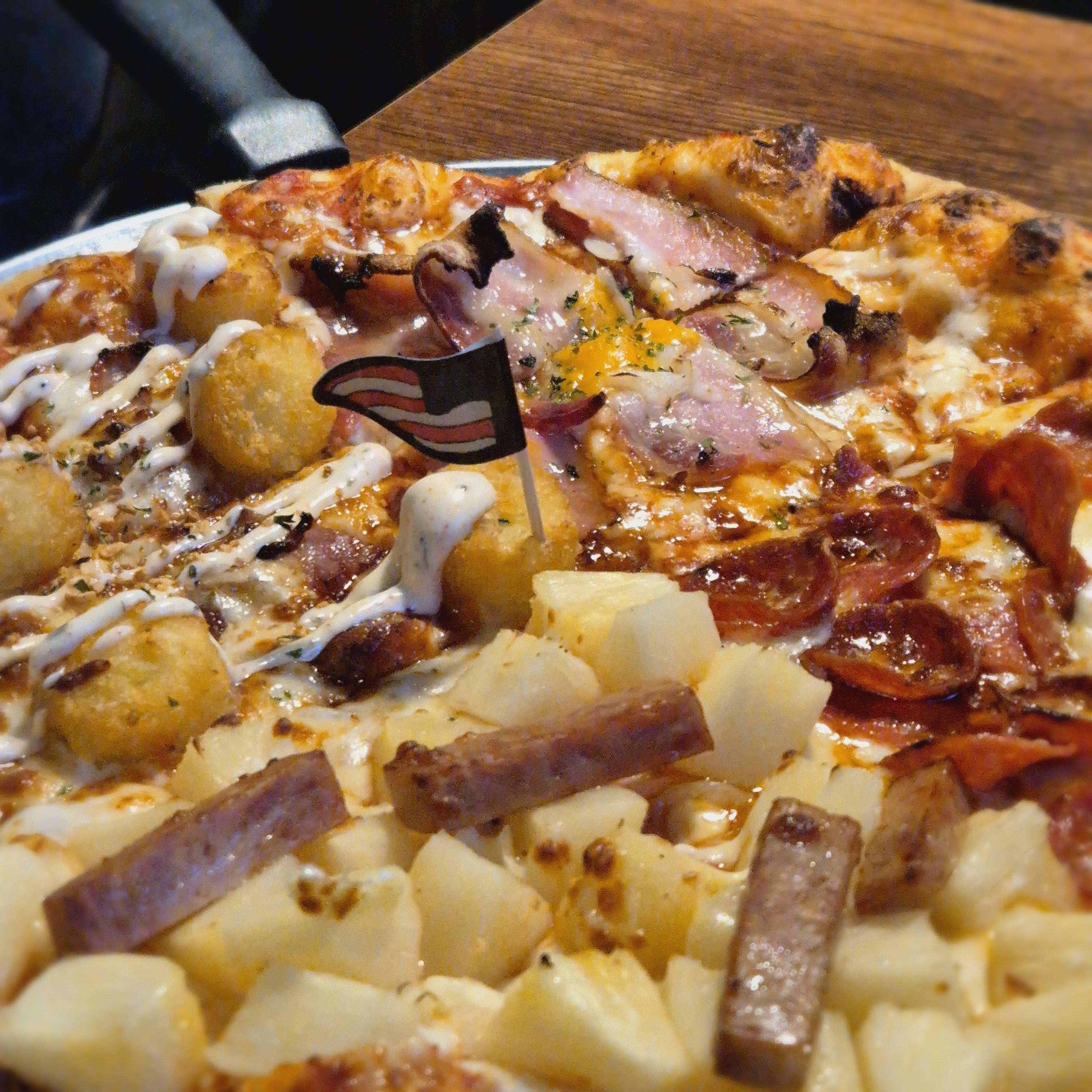 엄청난 토핑 속 꽂혀있는 미국기. 개인적으로는 국뽕이 있어서 그런지 우리나라 국기가 꽂혀있었으면 더 좋지 않았을까 라는 생각을 해보았다. 근데 맛만 좋으면 장땡이긴하다.