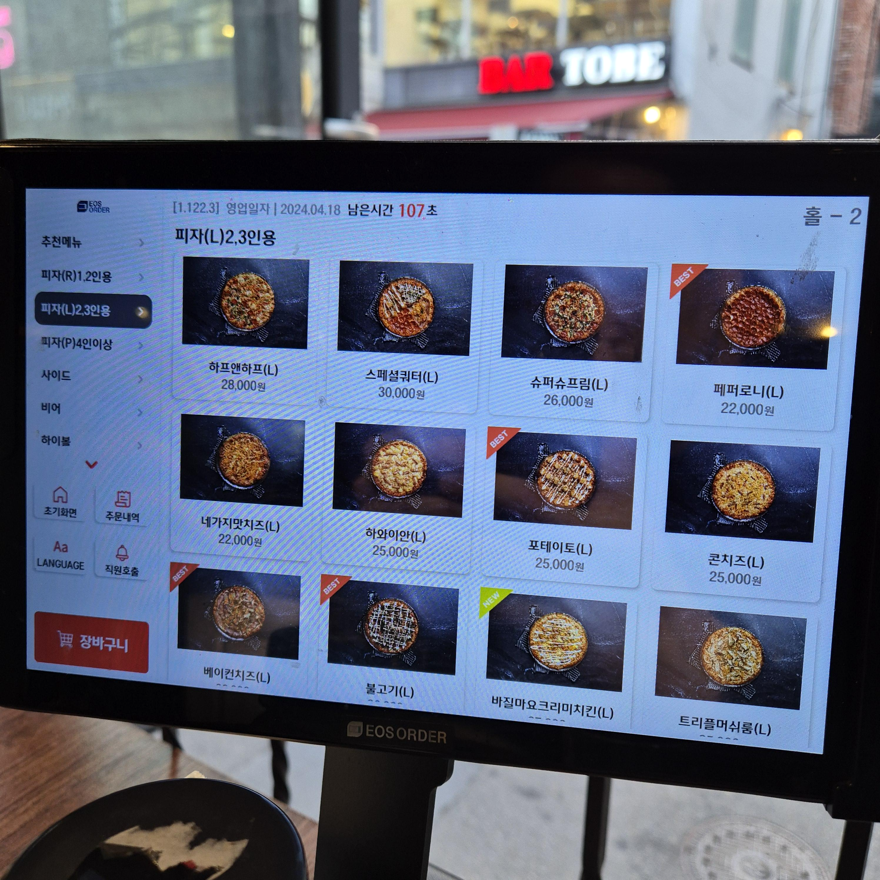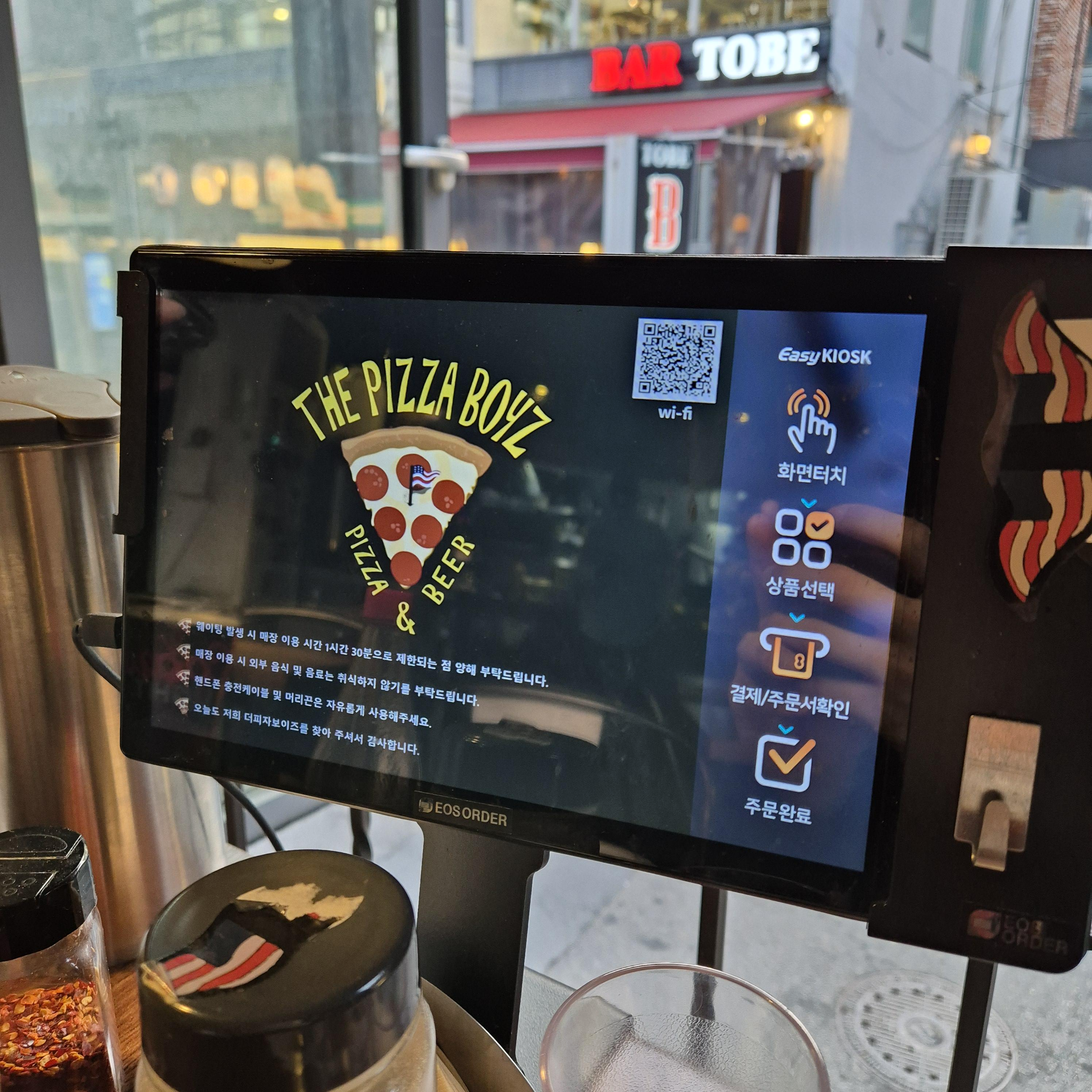 일단 더피자보이즈는 키오스크로 주문을 진행하는데, 생각보다 피자 메뉴와 사이드 등이 많아서 깜짝 놀랐다. 늦어진 지인이 거의 다 도착했다는 소식을 듣고, 필자의 일행은 성인 남 2명, 여 1명이었고, 스페셜쿼터(L) 하나와 윙&스틱 그리고 맥주까지 시켰다.