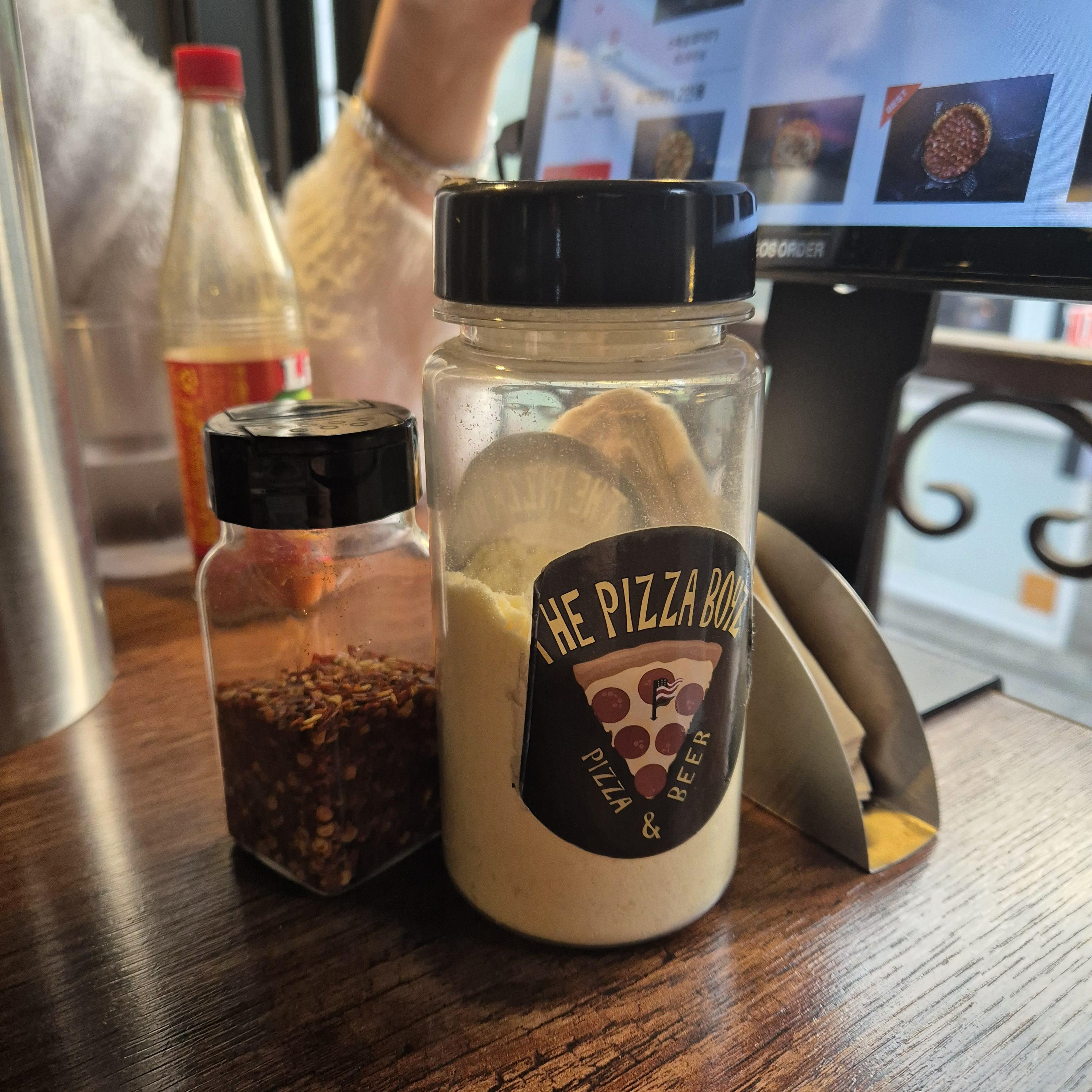 피자집에는 항상 있는 파마산치즈와 핫소스. 과거에는 정말 파마산 치즈를 산처럼 뿌려먹었었는데, 이제는 그렇게 먹으면 건강에 적신호가 올 것 같아서 그렇게는 못 먹겠다. 식기도 종이에 잘 포장되어 있어서 위생적으로 좋겠다는 생각이 들었다.