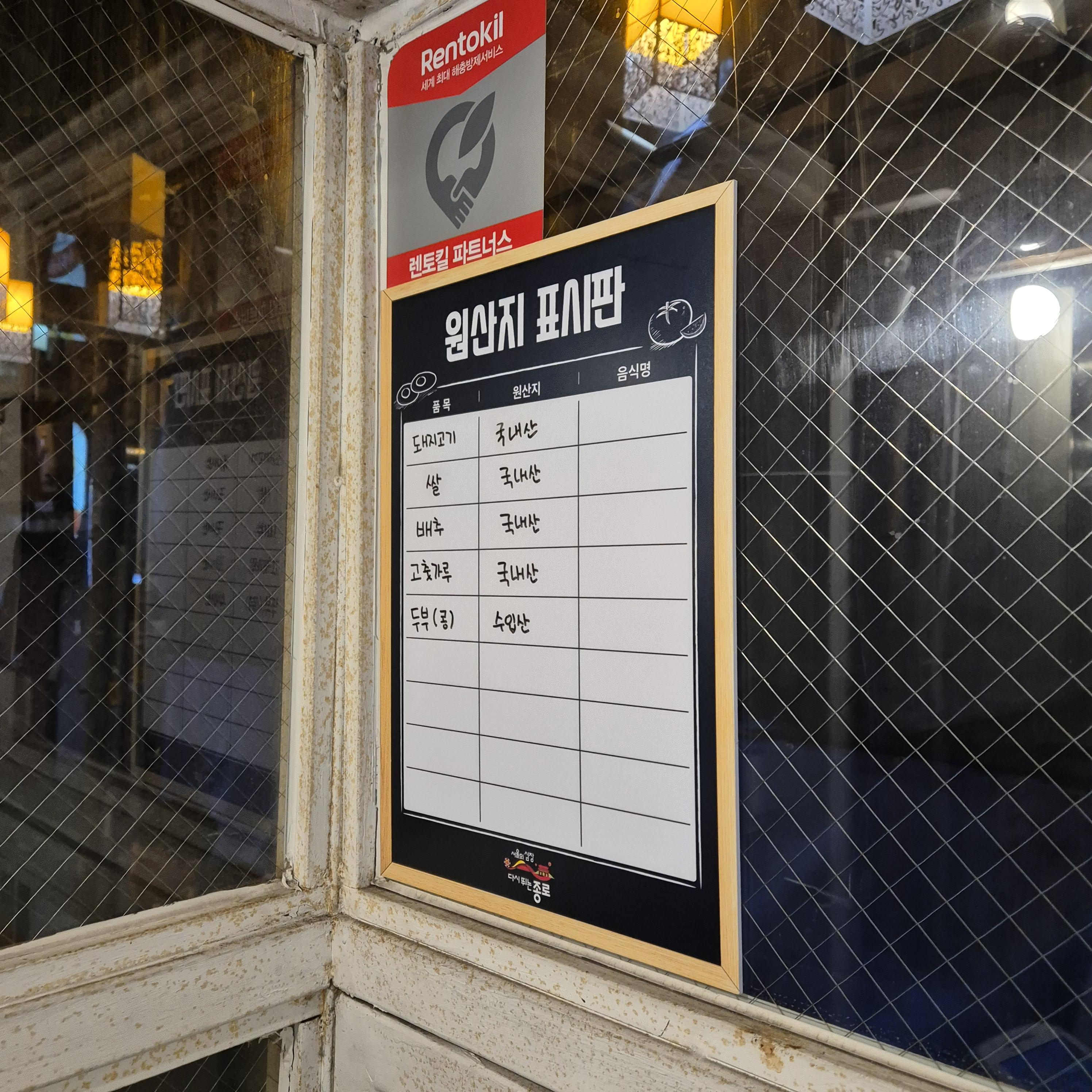 김진목삼 원산지 표시판