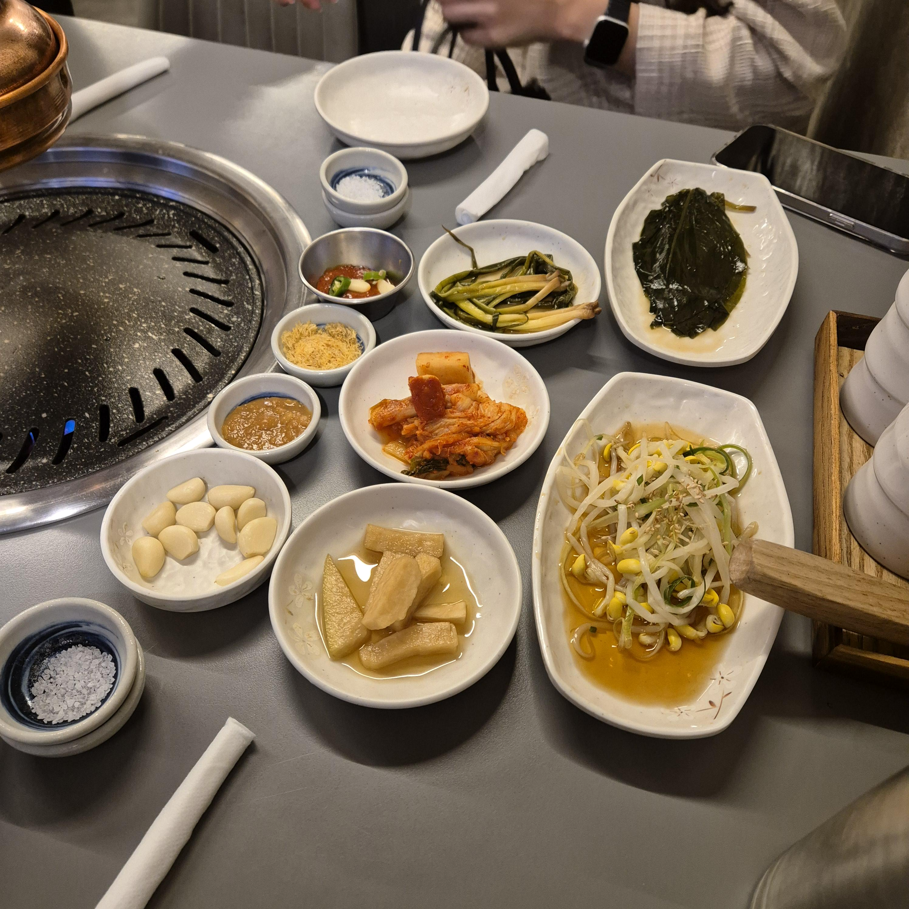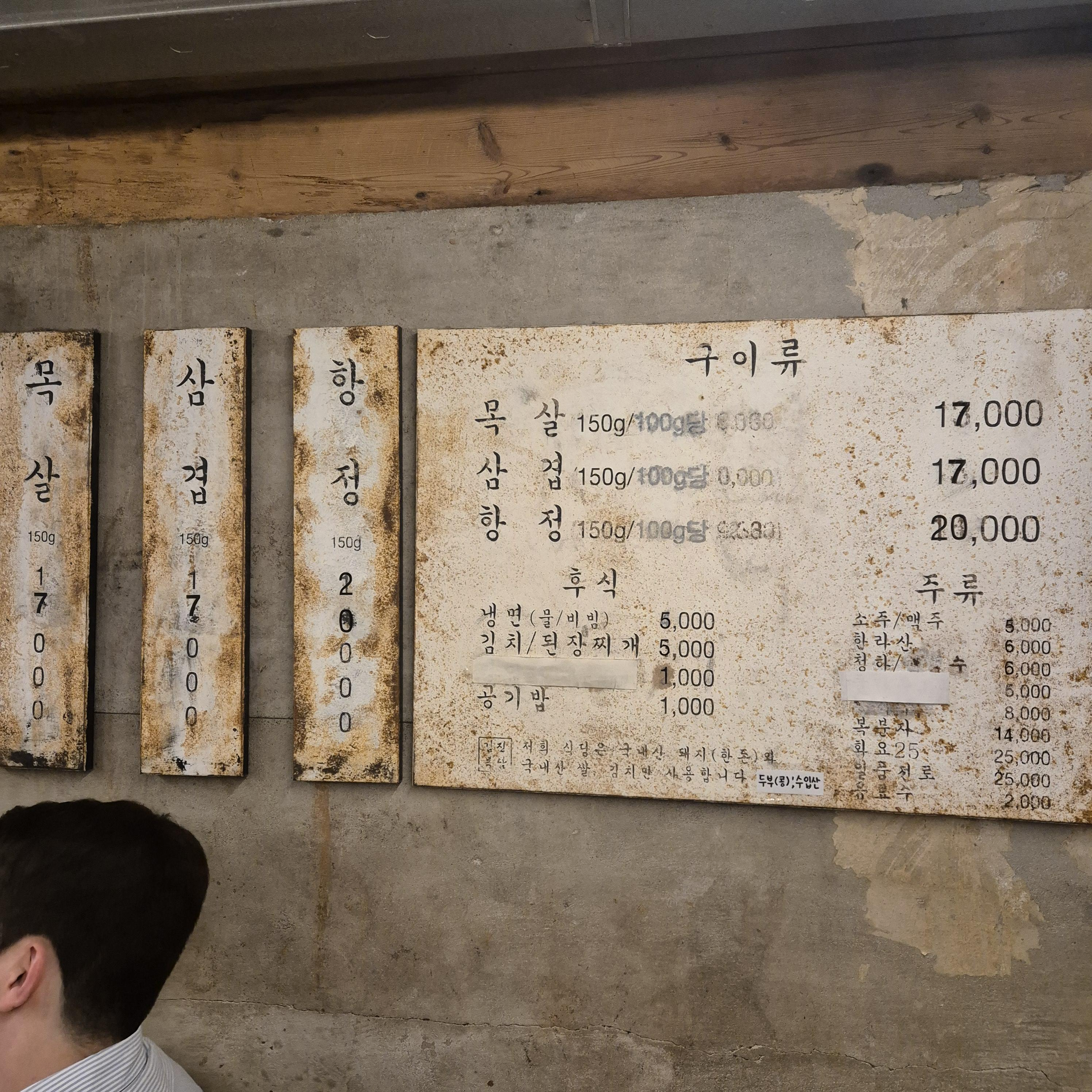 엄청 넓지도 엄청 좁지도 않은 적당한 사이즈의 내부였다. 딱히 특별한건 없었고, 전반적으로 깔끔한 고기집의 모습이었다. 오늘도 어김없이 이만 번 고민한 삼겹살이냐 목살이냐 항정살이냐 뭘 먼저 먹을 것인가. 사실 결국 다 먹을 것 같기는 했다.