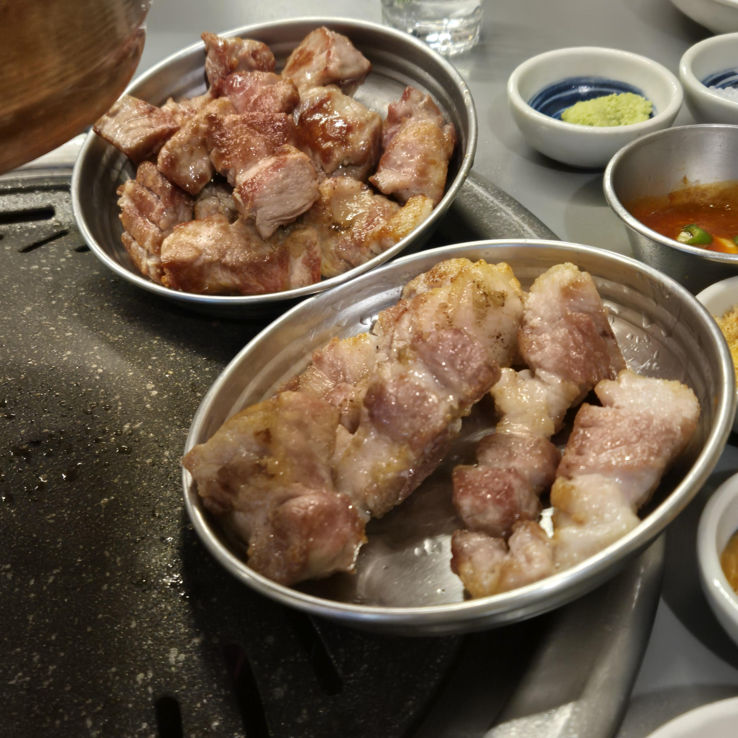 하지만 점차 완성되는 김진목삼 삼겹살과 목살, 두툼한 고기 사이로 촉촉하게 흘러나오는 육즙까지 완벽했다.
