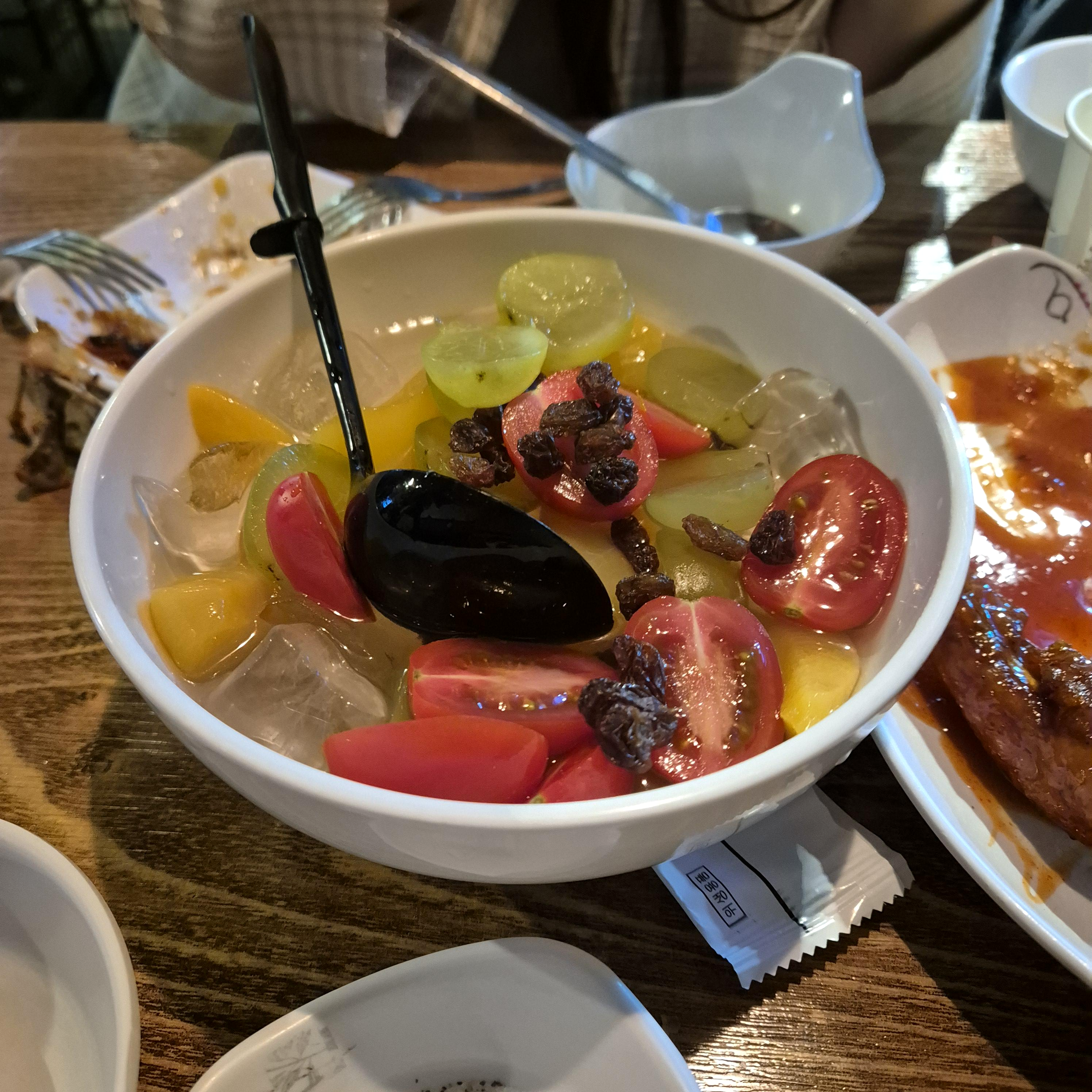솔직히 황도는 별로였다. 필자가 시키자고 강력하게 어필하여 시킨 건데, 너무 미안했다. 물론 시원해서 나쁘지 않게 먹긴 했지만, 양도 과일 간의 조화도 국물도 뭐 하나 딱히 마음에 드는 건 없었다. 실망한 일행들의 눈빛을 보고 바로 떡볶이를 시켜보았다.