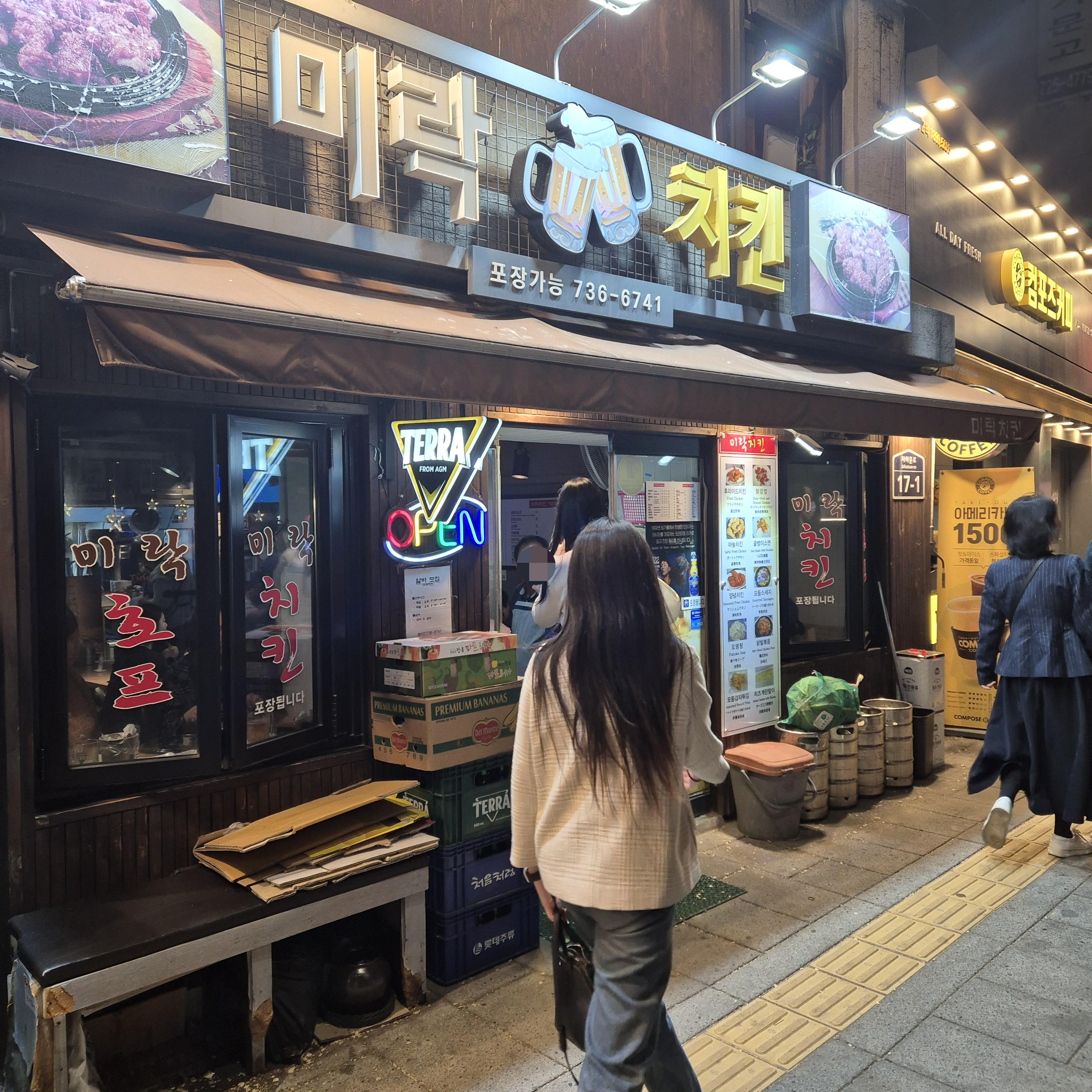 지인들과 2차를 갈 곳을 찾던 중 지인들이 이미 갔던 곳이고 괜찮았던 치킨집이 있다고 하였다. 덕분에 필자는 편하게 따라서 도착한 이곳이었다. 1차를 먹었던 곳에서 멀지 않은 곳이었다.