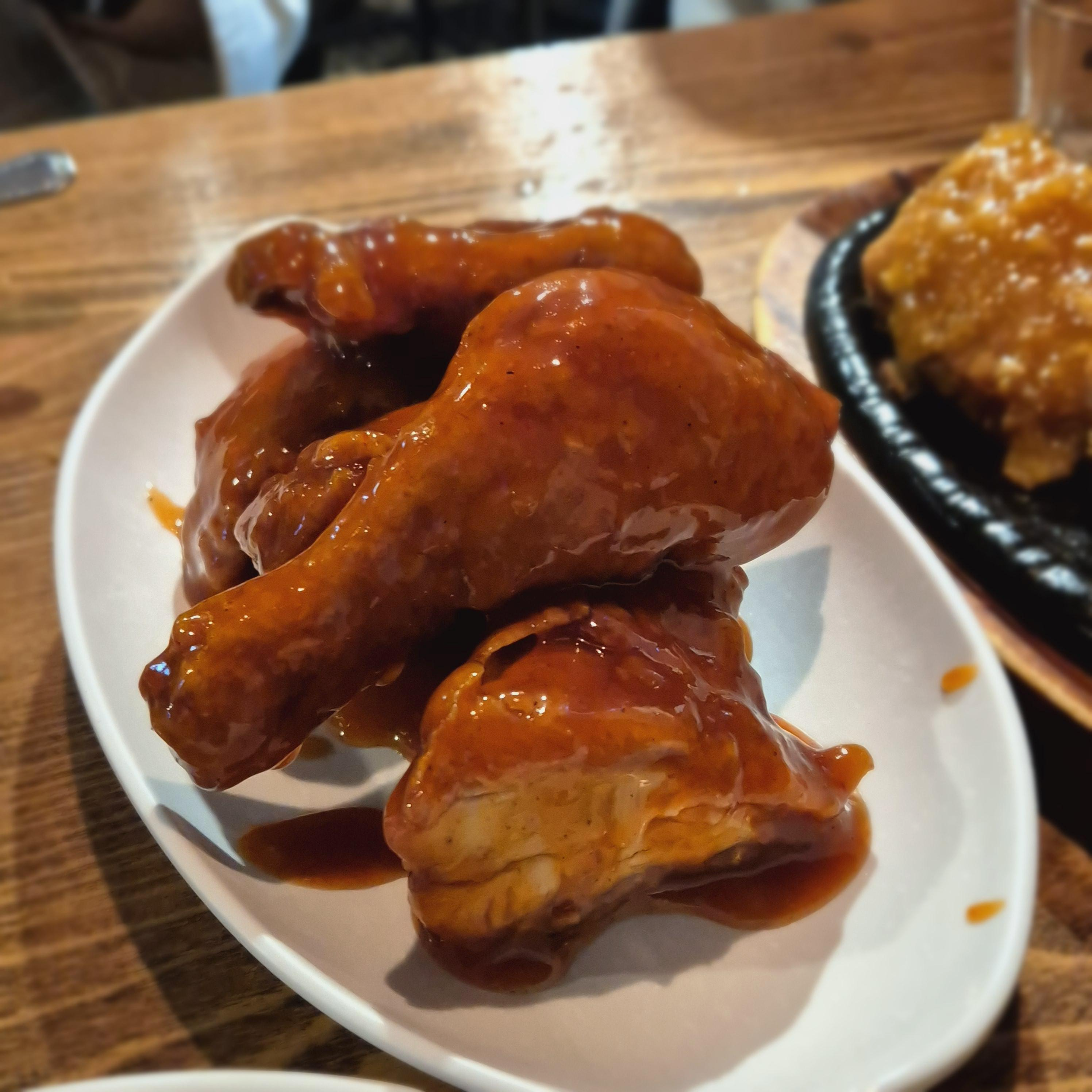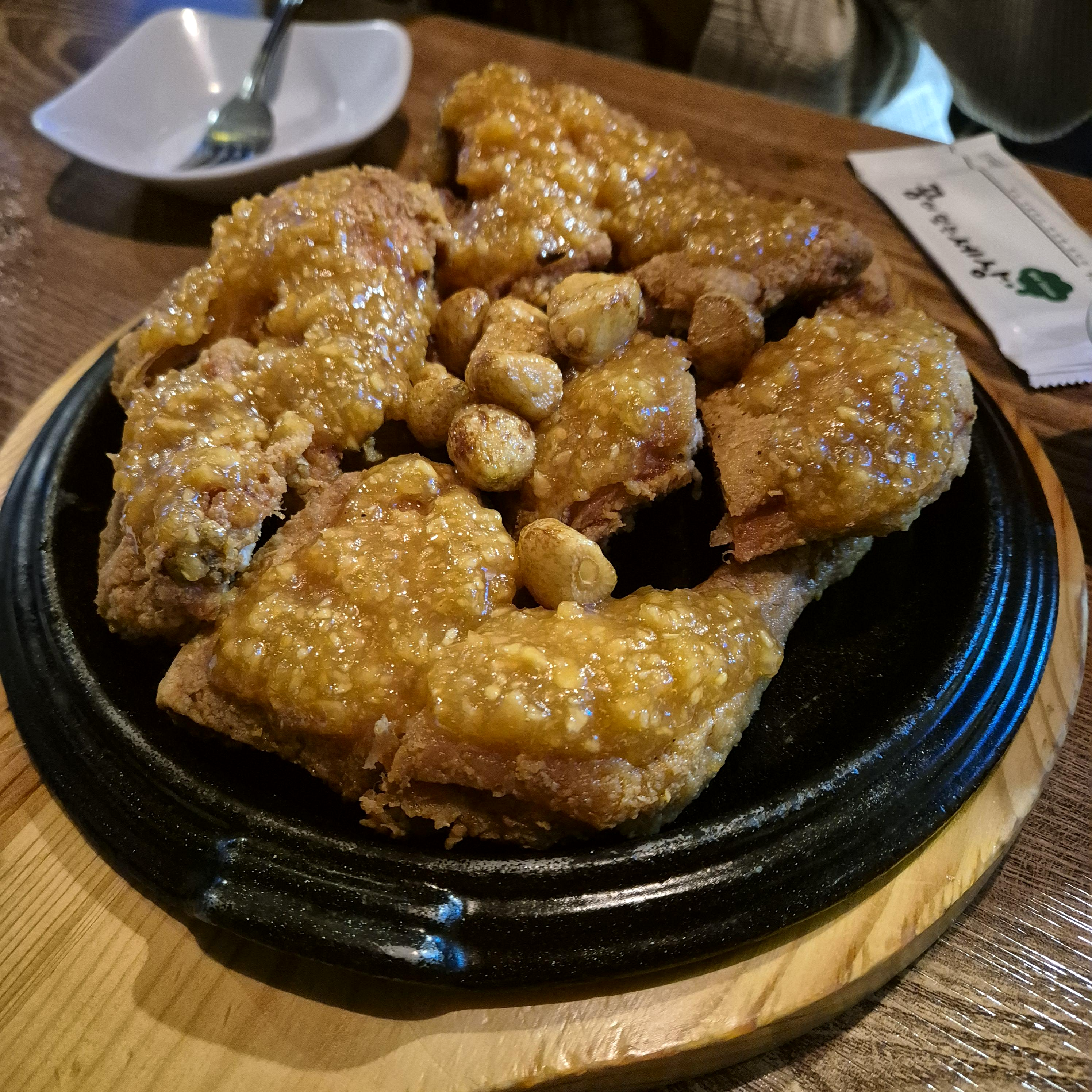 양념치킨도 맛있었다. 마늘은 철판에 나오고 양념치킨은 접시에 나오다 보니 왜 양이 적다고 말한 지 조금은 알 것 같았다. 그래도 매콤 달달한 소스가 묻힌 양념치킨은 맛있었다. 문득 3차를 갈뻔하다가 우리는 이곳에서 끝을 보기로 마음을 먹고, 사이드를 하나 추가하기로 했다.