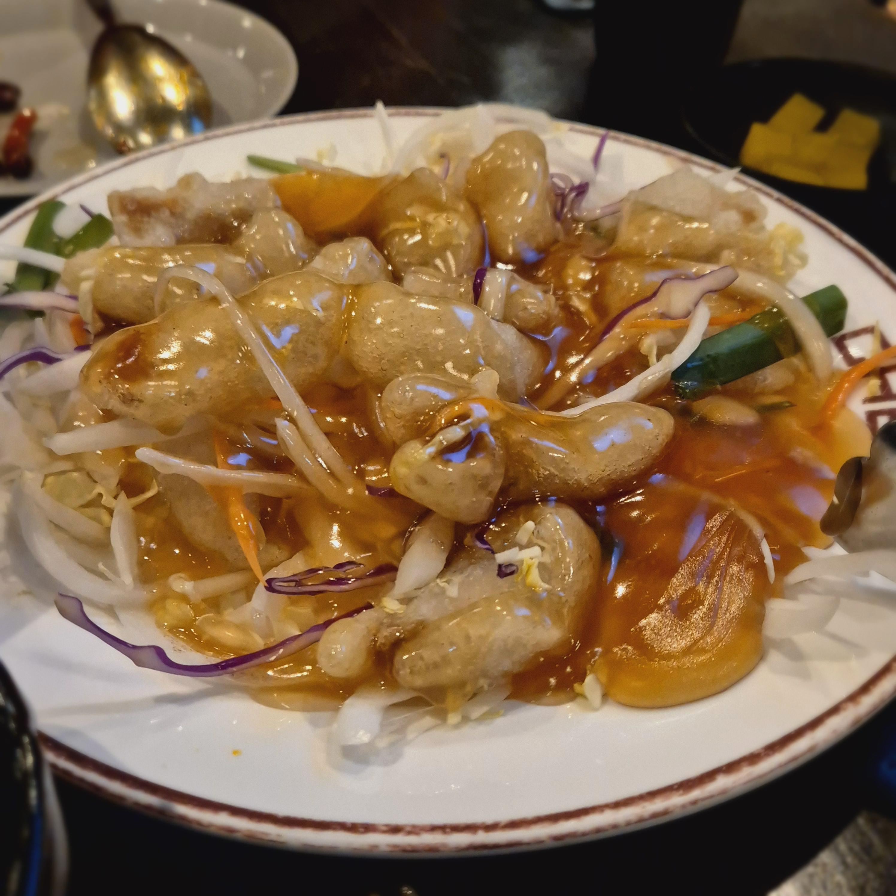 적당한 두께의 고기와 찹쌀튀김옷이 너무나 맛있고 식감도 좋았다. 소스도 깔끔하고 달달했지만 과하지 않아서 마지막 한 점까지 물리지 않고 먹을 수 있었다. 종종 야채를 소스에 찍어먹었는데, 그거 때문인지 괜스레 더 배가 찼다.
