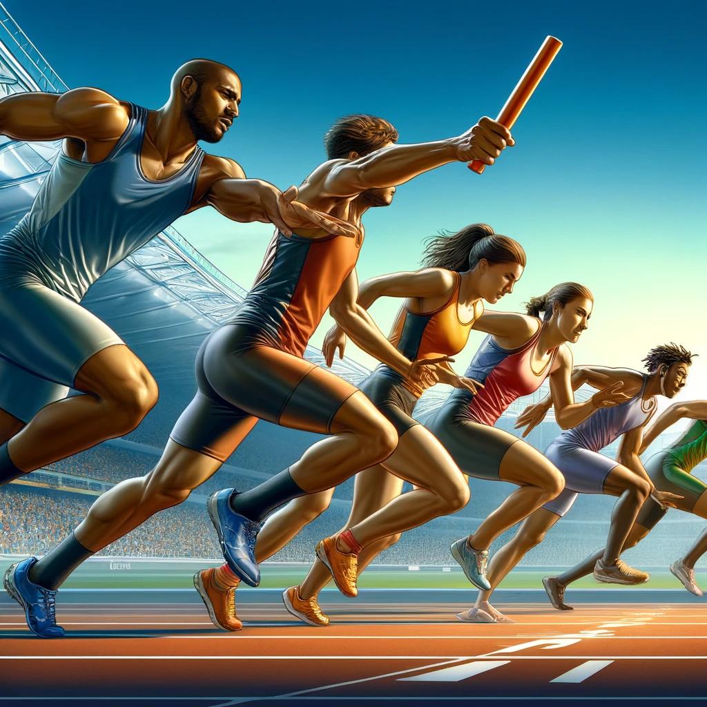 체육대회, 운동회 등 모든 단체게임의 꽃인 계주이다. 각 팀의 달릴 인원을 선정한 뒤, 바통을 넘겨주며 릴레이로 운동장을 달리는 게임이다.