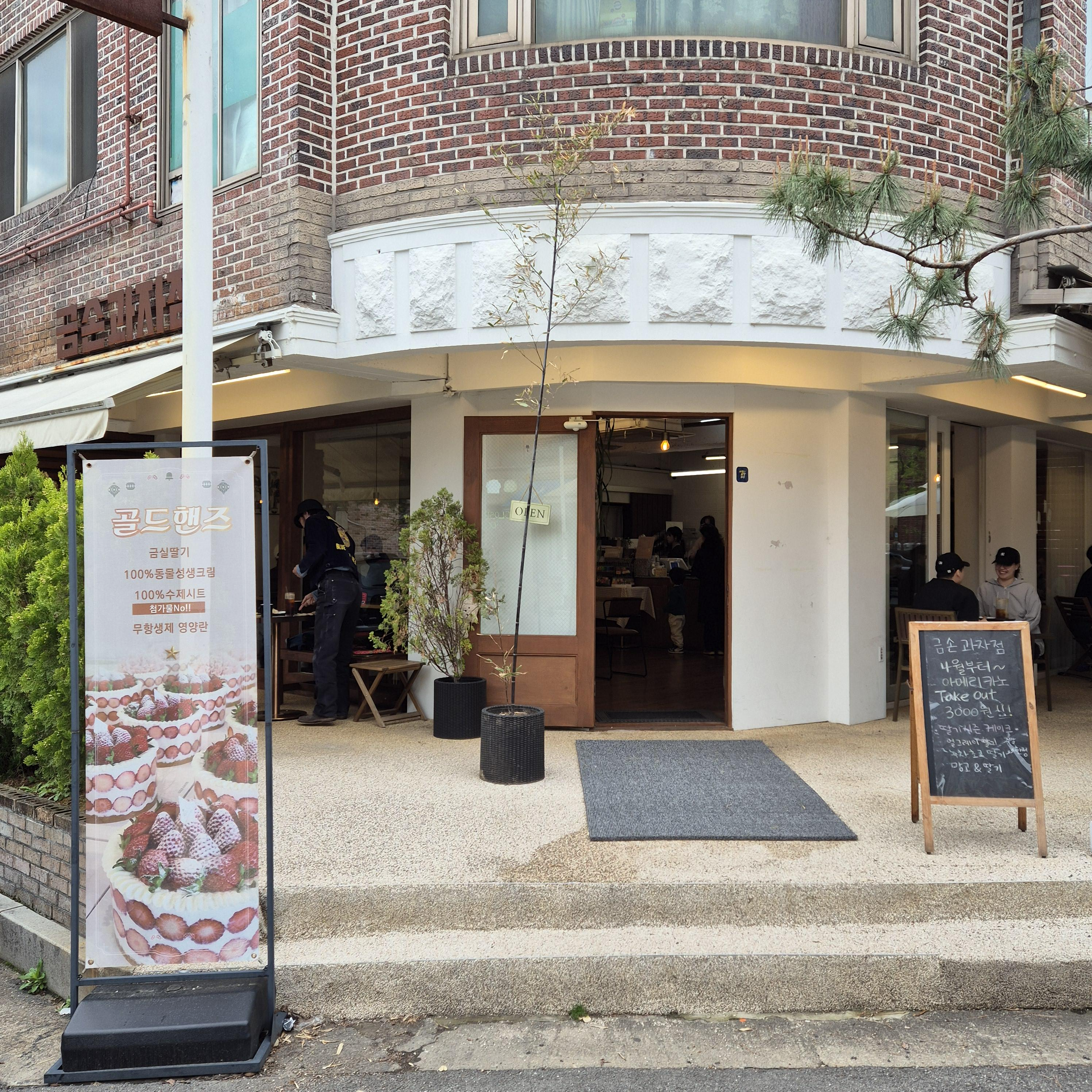 밤리단길에는 정말 많은 카페가 있다. 그중 몇몇 유명한 케이크 맛집들이 있는데 피스피스, 앨리스 카페, 주니케익 등과 같이 오랜 시간 맛과 퀄리티로 유지하고 있는 금손과자점이 있다. 위치는 밤리단길의 중앙 쯤 있는데 눈에 쏙 들어온다.